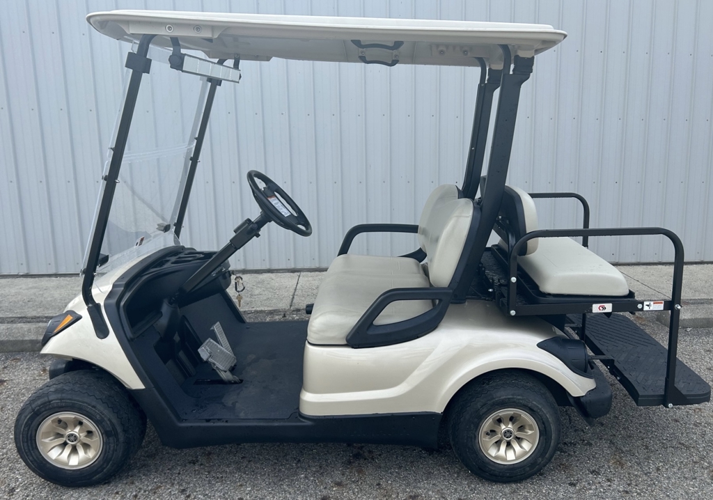 This street legal, 4 passenger, gas car is equipped with a rear flip seat kit.