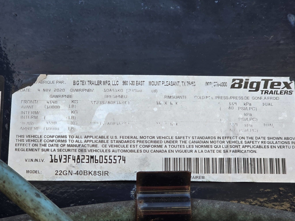 Equipment Trailer 2020 8.5X40 Big Tex 40′ 10T Gooseneck Equipment Hauler -dte10240-USED-055