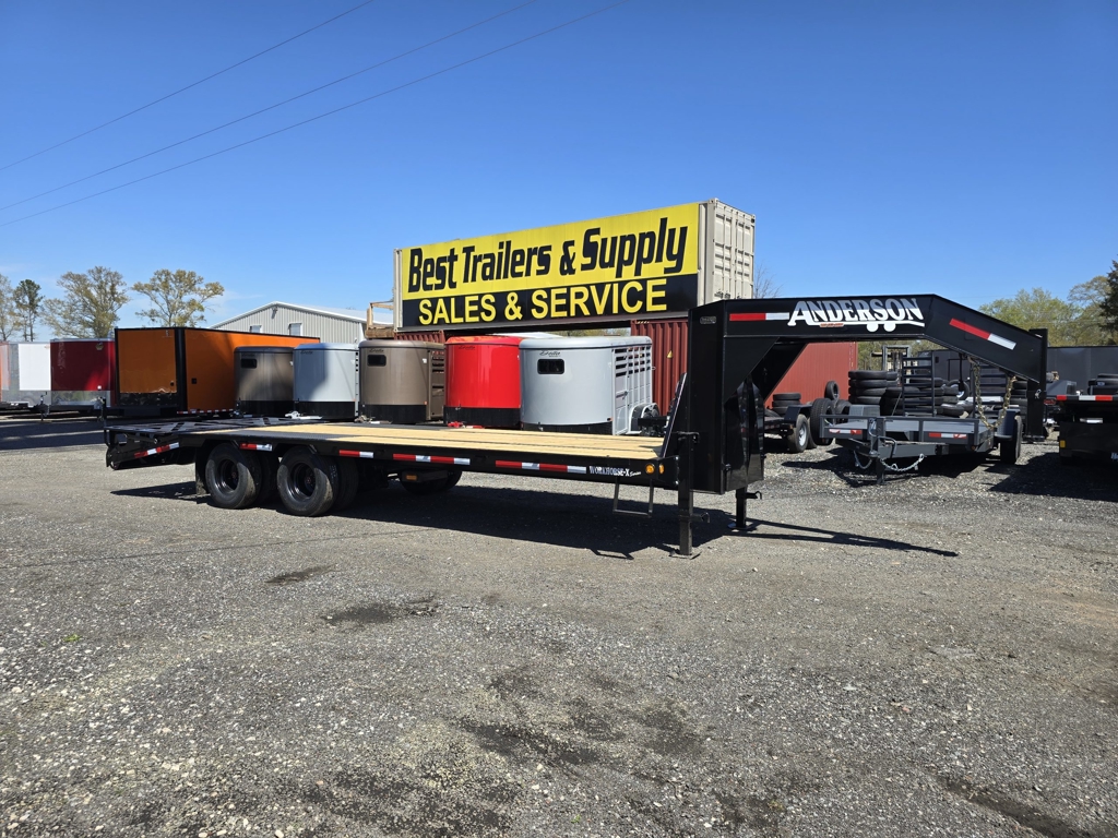 πŸ’₯ Welcome to Best Trailers & Supply – Your Ultimate Trailer Destination! πŸ’₯ πŸ“ Location: Byron, GA πŸ‘ πŸ“ž Call us at 478.654.5350 for Expert Advice and Unbeatable Deals! πŸ†“ Don’t Miss Out! Get a FREE White Wheel Spare Tire when you Pay Cash at Pick Up! πŸ†“ Anderson 25′ 12-Ton Gooseneck Wood Deck Trailer The Anderson 25′ 12-Ton Gooseneck Workhorse X-Series is built for heavy-duty hauling, designed to handle construction equipment, heavy machinery, and oversized loads with ease. Featuring a straight 25′ wood deck, high-strength steel frame, and Hutch 9700 suspension, this trailer is engineered for maximum durability and smooth towing under extreme conditions. Specifications: Deck Length: 25’ (No Dovetail) Deck Width: 102” GVWR: 24,500 lbs Axles: Tandem 12,000 lb oil-bath axles with electric brakes GAWR (per axle): 12,000 lbs Suspension: Hutch 9700 Heavy-Duty Suspension for enhanced stability Tires: 215/75R 17.5 (H-Range) Radial Tires on 8-lug wheels Main Frame: 14” I-Beam at 22 lbs per foot Crossmembers: 3” Channel on 16” centers Deckin Pressure-treated wood for durability and longevity Coupler: Adjustable 2-5/16” Gooseneck Coupler Jacks: Dual 12K spring-loaded drop leg jacks for superior support Ramps: Spring-assisted monster ramps or 5’ stand-up ramps for easy loading Stake Pockets & Rub Rail: Built-in for added cargo security Lights: Sealed LED lighting with a modular sealed wiring harness Paint: High-gloss industrial-grade enamel for a long-lasting finish Key Features: βœ”οΈ 12-Ton Capacity – Designed for hauling heavy equipment and large loadsβœ”οΈ 25′ Straight Wood Deck – Maximizes cargo space without a dovetailβœ”οΈ Heavy-Duty Suspension – Hutch 9700 suspension ensures a smooth, stable rideβœ”οΈ Pressure-Treated Wood Deck – Built to withstand rugged useβœ”οΈ Dual 12K Drop-Leg Jacks – Provides secure, stable support when parkedβœ”οΈ High-Strength Steel Frame – Engineered for long-term durability in tough conditions The Anderson 25′ 12-Ton Gooseneck Trailer is a true workhorse, built to haul big loads with confidence. Visit us in Byron, GA, or contact us today to get yours! 🚚 Delivery Available at $3 per Loaded Mile! 🚚 πŸ“ž For any questions, concerns, or info on this trailer, don’t hesitate to call our dedicated sales team at 478.654.5350! πŸ“ Visit us at Best Trailers & Supply in Byron, GA or call 478.654.5350 for more information! 🌟