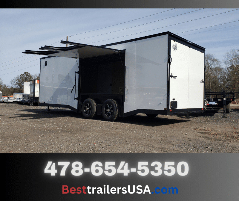 💥 Welcome to Best Trailers & Supply – Your Ultimate Trailer Destination! 💥 📍 Location: Byron, GA 🍑 📞 Call us at 478.654.5350 for Expert Advice and Unbeatable Deals! 🆓 Don’t Miss Out! Get a FREE White Wheel Spare Tire when you Pay Cash at Pick Up! 🆓 8.5×24 Enclosed Car Hauler Trailer – Ideal for Vehicle Transport The 8.5×24 Enclosed Car Hauler trailer is designed for secure and reliable transportation of cars, motorcycles, and equipment. With its spread axle design, wide ramp door, and escape door options, this trailer ensures ease of loading, unloading, and hauling, making it a perfect choice for vehicle enthusiasts, businesses, and motorcycle riders. Key Features: Spread axle design for increased stability and load capacity Ultimate escape door options for added convenience Extra-wide ramp door standard for easy vehicle access FREE white wheel spare tire when you pay cash at pick-up for added convenience Semi screwless .white exterior for a sleek, professional look 5,000 lb axles for heavy-duty performance V-nose adds 2′ to interior for more cargo space ST225 15″ steel belted tires for durability and road performance Electric brakes & E-Z lube hubs for smooth braking and easy maintenance 24″ O.C. roof members for structural strength Interior height of 84″ for ample vertical space 1-piece aluminum roof for durability and protection from the elements 7-way & electric breakaway for safety 16″ O.C. side walls for added strength and support 3/4″ plywood floors for a strong, long-lasting base 1-12 volt LED dome light for interior visibility Trimmed ramp & 16″ flap for easy vehicle loading 2-5/16″ coupler for secure towing 3/8″ plywood walls for additional interior durability Non-powered roof vent for proper ventilation Aluminum teardrop fenders for a stylish and durable design 2K jack & sand foot for easy leveling and setup 6″ steel I-beam main frame for superior strength and support 24″ ATP stone guard & J-rail for added protection LED light package for optimal visibility and safety 36″ side door with safety chains for secure and easy access 2″ V-nose (ATP & J Rail) stepwell with ATP for smooth towing and enhanced structure Deluxe tag bracket for easy registration This 8.5×24 Enclosed Car Hauler is perfect for hauling vehicles, motorcycles, and equipment, offering premium features for a safe, secure, and smooth transport experience. 📞 Call us today for more information, pricing, and customization options! 🚚 Delivery Available at $2 per Loaded Mile! 🚚 📞 For any questions, concerns, or info on this trailer, don’t hesitate to call our dedicated sales team at 478.654.5350! 📍 Visit us at Best Trailers & Supply in Byron, GA or call 478.654.5350 for more information! 🌟