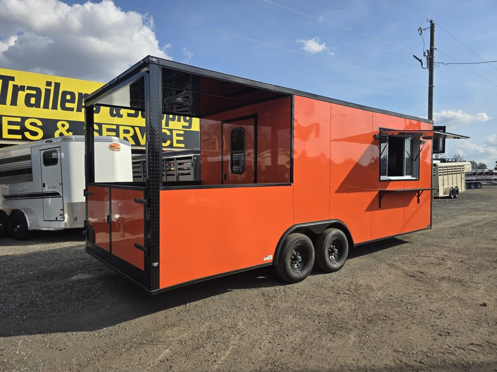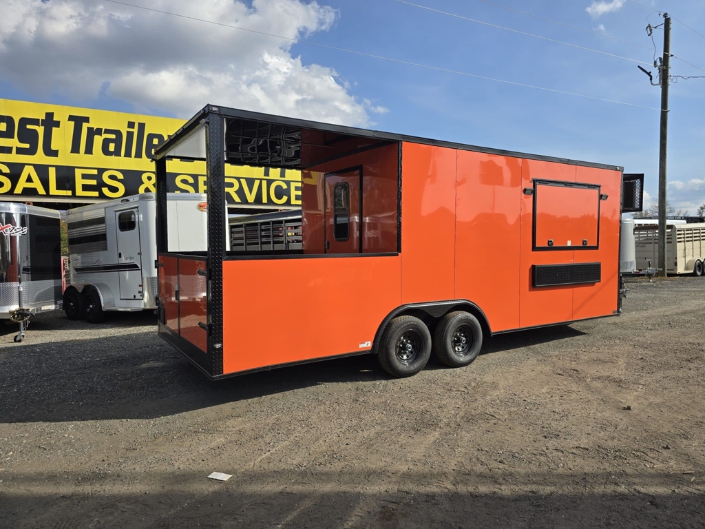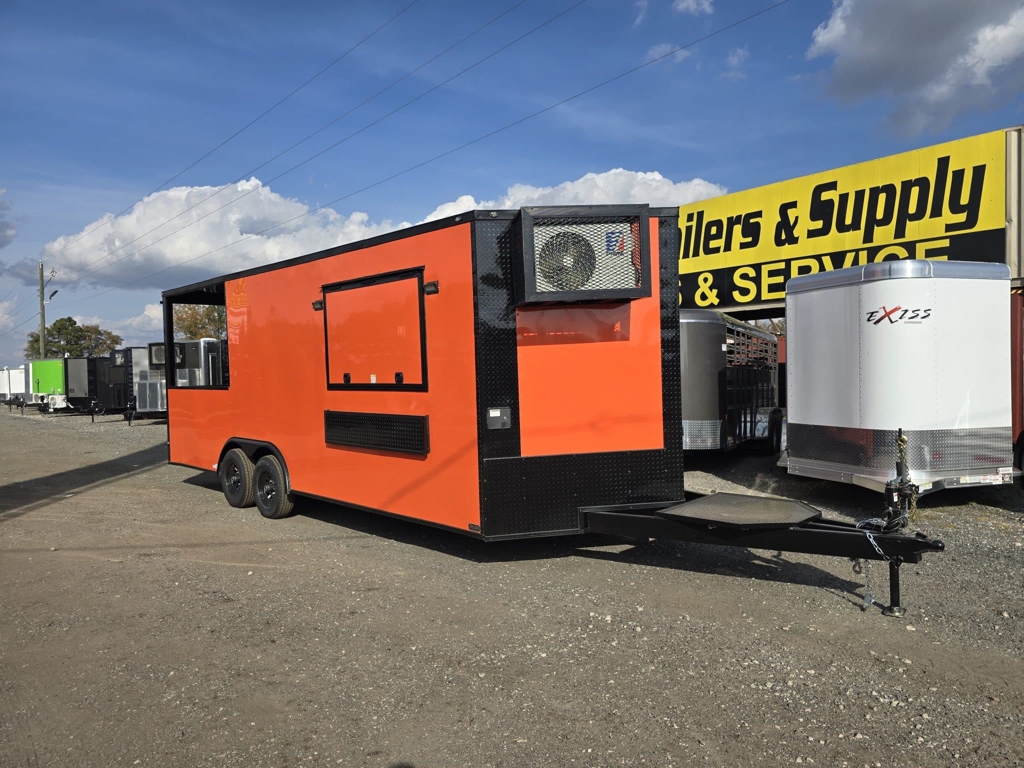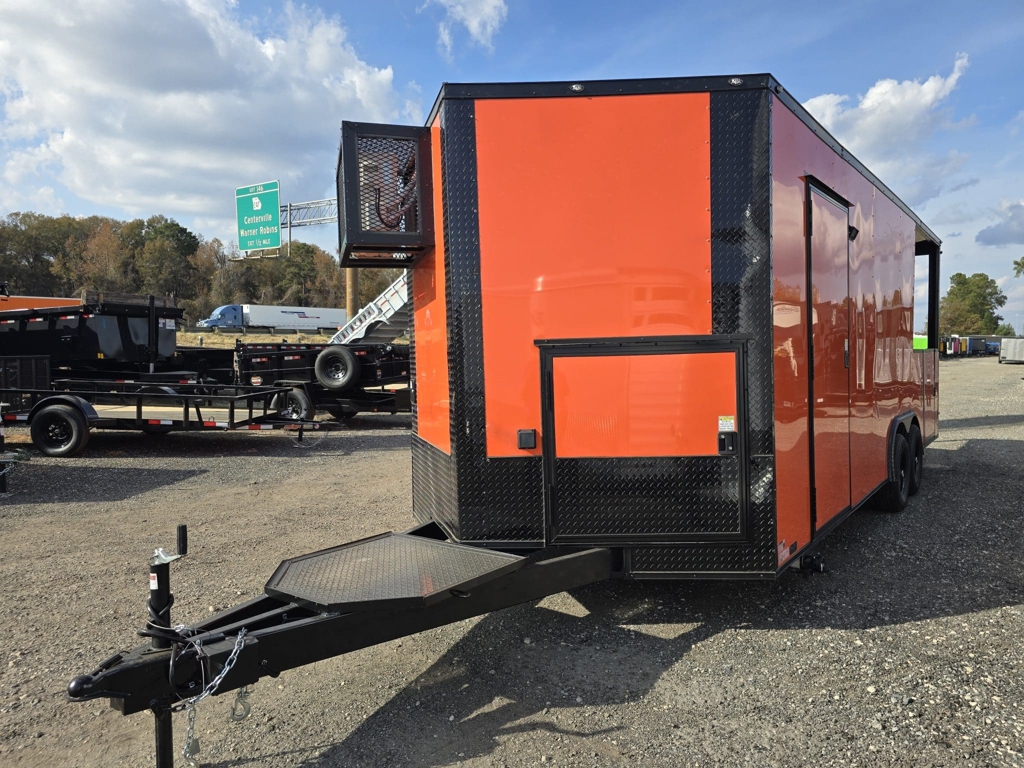 💥 Welcome to Best Trailers & Supply – Your Ultimate Trailer Destination! 💥 📍 Location: Byron, GA 🍑 📞 Call us at 478.654.5350 for Expert Advice and Unbeatable Deals! 🆓 Don’t Miss Out! Get a FREE White Wheel Spare Tire when you Pay Cash at Pick Up! 🆓 CP8.522 TAV-FI-50EP-AC-SINKS-BO (080Orange) — Concession Porch Trailer This 8.5×22 Empire Cargo concession porch trailer is built for serious food service and mobile vending. With a durable all-steel construction, upgraded electrical system, and a thoughtfully designed interior layout, it’s ready to support a wide range of business setups—from BBQ operations to festival vending and mobile kitchens. Interior & Construction Features:• Mill-finish aluminum walls and ceiling for a clean, low-maintenance workspace• Durable rubber coin flooring throughout for traction and easy cleanup• Front sink package mounted in the nose for convenient prep and wash use• 50-amp electrical package to power appliances, lighting, and equipment• Mini-split A/C system to keep the interior cool during long workdays• Insulated walls and ceiling for improved climate control Exterior & Functional Upgrades:• Extended tongue with a generator platform—ready for power on the go• 36″ access door in the V-nose for easy entry and service access• Rear porch area equipped with a knee wall—perfect for smokers, grills, or customer service windows• Blackout trim package for a sleek, modern appearance• 5200-lb leaf spring axles for dependable towing and load handling This concession porch trailer is designed for vendors who need reliability, space, and smooth workflow. Whether you’re serving BBQ, fried foods, drinks, or festival favorites, this trailer provides the layout and equipment foundation to get your business operating efficiently. Stop by and see it in person to explore everything it offers! 🚚 Delivery Available at $2 per Loaded Mile! 🚚 📞 For any questions, concerns, or info on this trailer, don’t hesitate to call our dedicated sales team at 478.654.5350! 📍 Visit us at Best Trailers & Supply in Byron, GA or call 478.654.5350 for more information! 🌟
