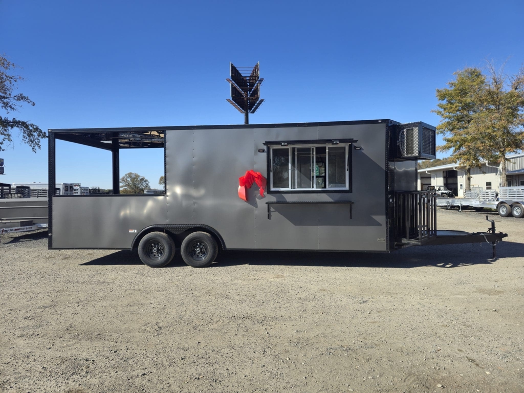 πŸ’₯ Welcome to Best Trailers & Supply – Your Ultimate Trailer Destination! πŸ’₯ πŸ“ Location: Byron, GA πŸ‘ πŸ“ž Call us at 478.654.5350 for Expert Advice and Unbeatable Deals! πŸ†“ Don’t Miss Out! Get a FREE White Wheel Spare Tire when you Pay Cash at Pick Up! πŸ†“ Empire Cargo 8.5Γ—22 Concession Porch Trailer – Mini Split AC, 50 Amp Package, Sinks, Gen Platform & Blackout Trim This Empire Cargo 8.5Γ—22 concession porch trailer is fully equipped and ready to be customized for food service, vending, events, or mobile business operations. With a spacious interior, dedicated porch area, upgraded electrical package, and a full AC system, this trailer provides the comfort, durability, and flexibility needed for serious commercial use. Interior Features Mill finish walls and ceiling for a clean, durable, easy-to-sanitize workspace Rubber coin flooring for slip resistance and long-term wear Mini Split A/C system keeps the interior cool and comfortable during long work days Sinks in the nose for convenient cleaning and prep 50 amp electrical package ready to support appliances, lighting, and equipment 36″ access door in the V-nose for quick entry and exit Exterior & Porch Features Extended tongue with generator platform β€” ideal for mounting a generator without sacrificing interior space Rear porch with knee wall β€” perfect for serving, grilling, or outdoor food operations Blackout trim package adds a modern, high-end look Tandem 5200 lb leaf spring axles for smooth towing and dependable load capacity Built for Mobile Food & Business Use Whether you’re outfitting it for concessions, BBQ, shaved ice, retail, or events, this 8.5Γ—22 porch model provides the strong foundation and essential features you need to get up and running quickly. Its rugged construction and smart layout make it ideal for both new builds and established businesses looking to upgrade. 🚚 Delivery Available at $2 per Loaded Mile! 🚚 πŸ“ž For any questions, concerns, or info on this trailer, don’t hesitate to call our dedicated sales team at 478.654.5350! πŸ“ Visit us at Best Trailers & Supply in Byron, GA or call 478.654.5350 for more information! 🌟