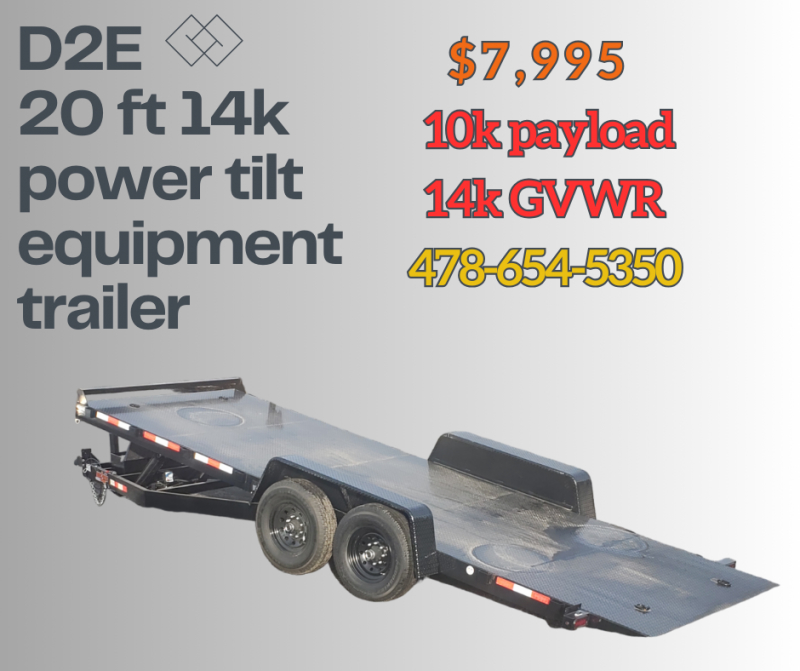 Price: $6,995.00 2022 Down 2 Earth Trailers 82x20 10k Power Tilt Car Hauler equipment trailer Year: 2022 Model: 82X20 10K Power Tilt Car Hauler Equipment Trailer Make: Down 2 Earth Trailers Condition: New Contact Us