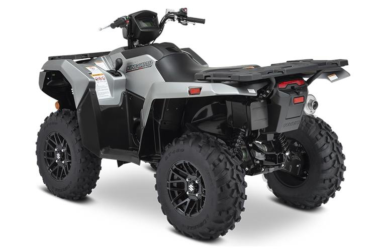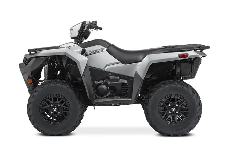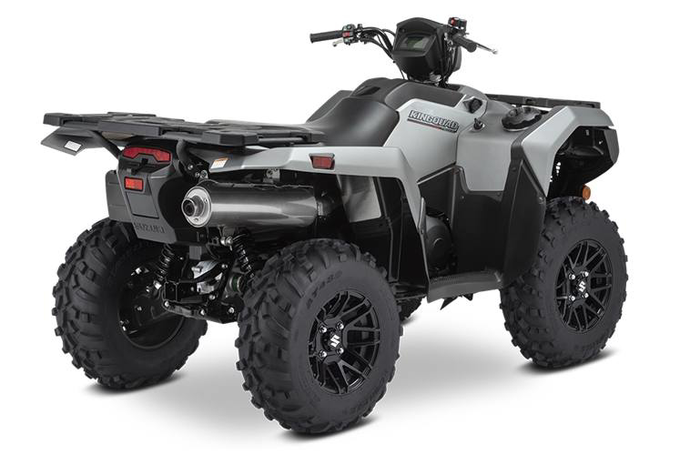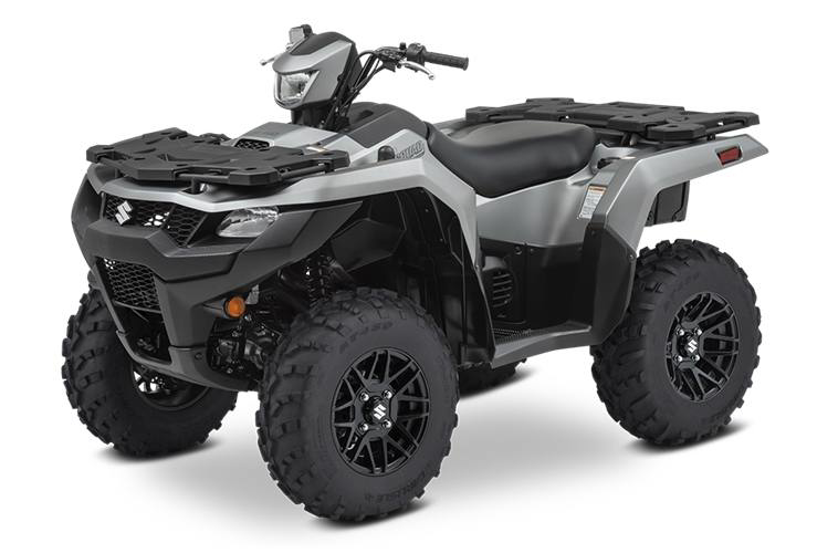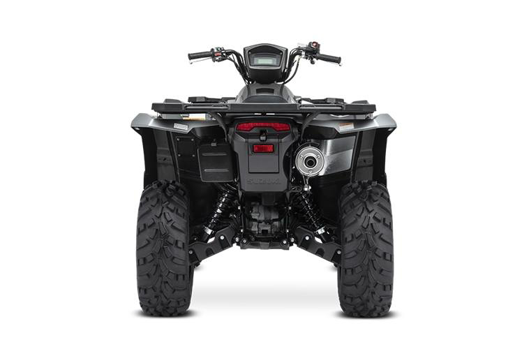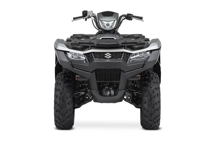 Engine Type: 722cc (44.1 cubic in.), 4-stroke, 4-valve, DOHC single cylinder Displacement: 722cc Bore x Stroke: 4.094 in. x 3.346 in. (104.0 mm x 85.0 mm) Engine Cooling: Liquid Fuel System: Suzuki electronic fuel injection Starting System: Electric Front Suspension: Independent, double wishbone, coil spring, gas charged and oil damped with 5-way preload adjustable shock absorbers Front Brake Type: Disc brakes, twin rotors Front Tires: AT25 x 8-12, tubeless type x 2 Rear Suspension: Independent, double wishbone, coil spring, gas charged and oil damped with 5-way preload adjustable shock absorbers Rear Brake Type: Sealed oil-bathed multi-disc Rear Tires: AT25 x 10-12, tubeless type x 2 Dry Weight: Curb Weight: 721 lb. (327 kg) Fuel Capacity: 4.6 US gal. (17.5 L) Ground Clearance: 10.2 in. (260 mm) Machine Dimensions (LxWxH): 84.6 in. (2150 mm) x 47.8 in. (1215 mm) x 50.6 in. (1285 mm) Wheelbase: 50.6 in. (1285 mm) Drive Train: 2WD, 4WD and 4WD Differential Lock Final Drive: Shaft drive Transmission: Automatic variable ratio (V-belt), with high/low-range, and reverse Lighting: 12V 35/35W x 2 fender-mounted, 12V 35W x 1 handlebar-mounted Colors: Metallic Matte Rocky Gray