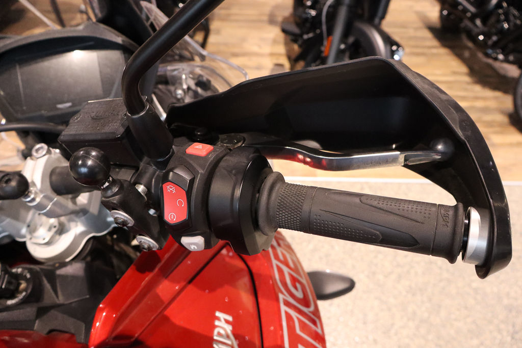 Standard equipment includes heated rider and passenger seats, heated grips, LED fog lamps, and auxiliary sockets that can power everything you need; from heated clothing to GPS systems. This Tiger 800, packed full of Technology sets a new standard in off-road adventuring, while an improved riding position lets you make the most of the trademark Triumph agile handling. Add a 21” front wheel for true off-road performance, a high-level front mudguard, and new Tiger 800 contemporary style giving you everything you need for a thrilling all-road experience.