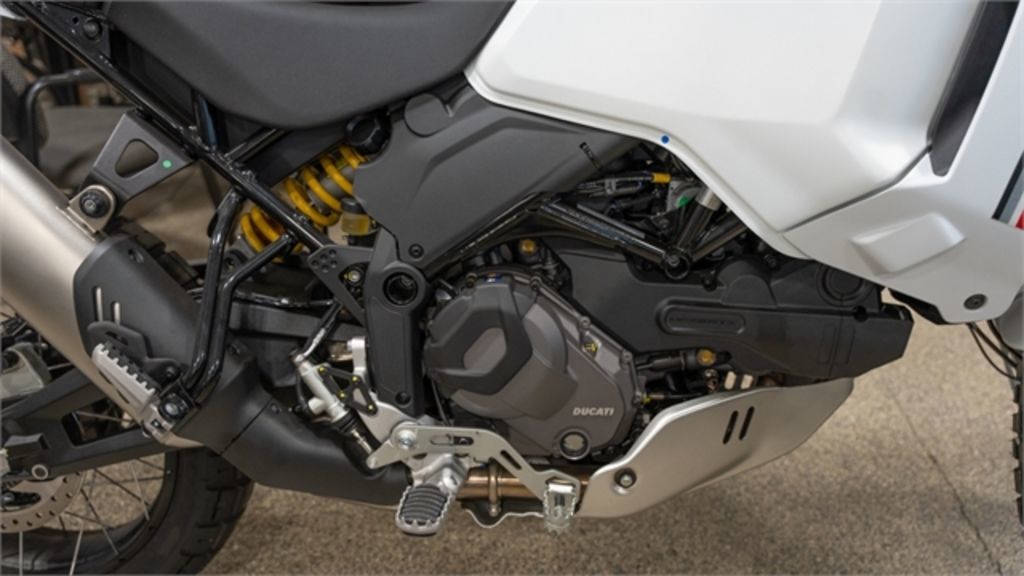 DesertX is equipped with the latest evolution of the 937 cc Testastretta 11th desmo, lighter by 3.7 lb compared to the previous generation and equipped with a new gear ratio to ensure the best off-road behavior.