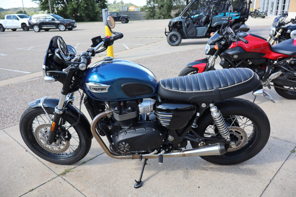 This Pre-Owned 2023 Triumph Bonneville T100 Chrome Edition Motorcycle is for sale at Motoprimo Motorsports located in Lakeville, Minnesota. Reach out to Motoprimo Motorsports today, CONTACT US. If this isn't the exact Triumph Motorcycle you're looking for don't hesitate to go back and REVISE YOUR SEARCH. We're sure to have the perfect Motorcycle for you in our showroom near Lakeville, MN. Visit Motoprimo Motorsports, the premier Triumph dealership of Minnesota.