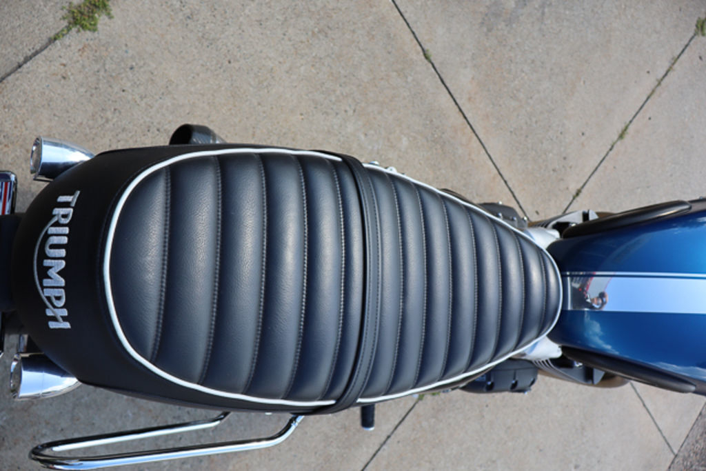 Painted in deep Cobalt Blue, the iconic Bonneville tank is beautifully finished with unique Chrome Edition metal stripe.
