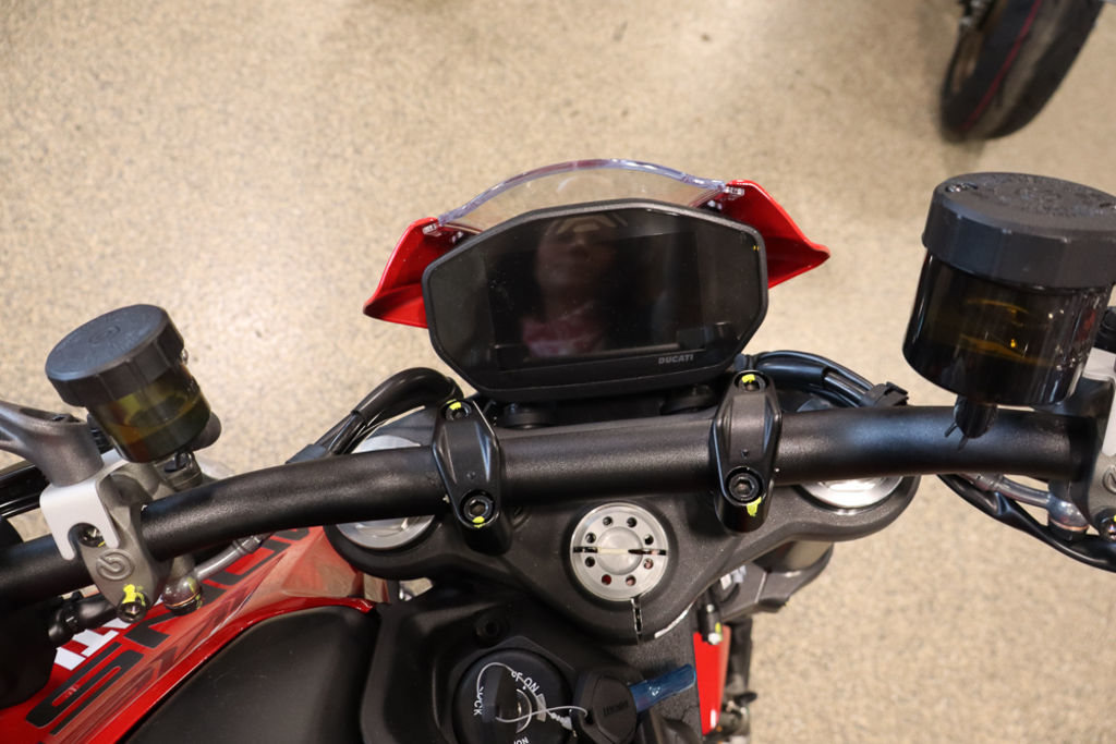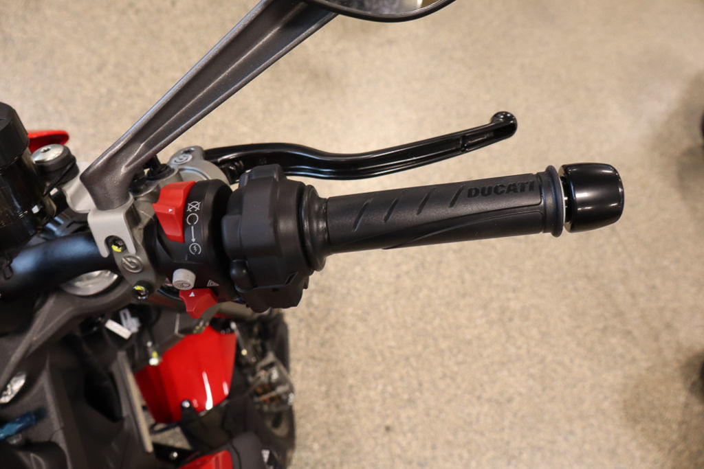 Narrow sides and a front frame that ends at the height of the vertical cylinder head ensure the rider can easily touch the ground with their feet when stationary. The muscular bison-back tank for which the Monster stands out is reproportioned, now more compact to ensure more comfortable and effective ergonomics.