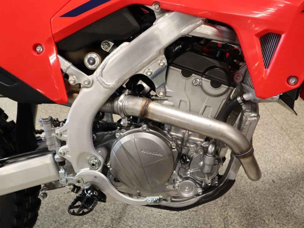 Imagine the ultimate dream bike for dirt riders—a machine that combines the power, agility, and precise handling of a factory motocrosser with the finesse needed to conquer off-road adventures. That’s the 2024 Honda CRF450RX. We've taken all the remarkable enhancements from our 2024 CRF450R motocrosser and infused it with some engineering magic, resulting in the perfect off-road companion. You’ll experience increased low- and midrange torque through revised ECU and fuel injection settings, along with the enhanced usability provided by a wide-ratio five-speed transmission. But that's not all: The RX showcases our extraordinary Honda Selectable Torque Control, empowering you to optimize traction in any scenario. Additionally, a lightweight chassis, 18-inch rear wheel, and specialized suspension settings are meticulously designed to conquer every terrain you encounter. And here's the icing on the cake: our unrivaled reputation for quality and reliability. The CRF450RX is the genuine article, as any off-road rider will attest!