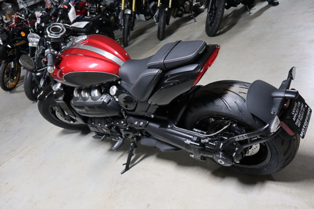With interchangeable R and GT foot controls, rider and passenger seats for tailored ergonomics, plug and play technology for greater convenience, styling parts to customize the look, and luggage solutions for longer rides, there are more than 50 genuine Triumph accessories available to create your perfect Rocket