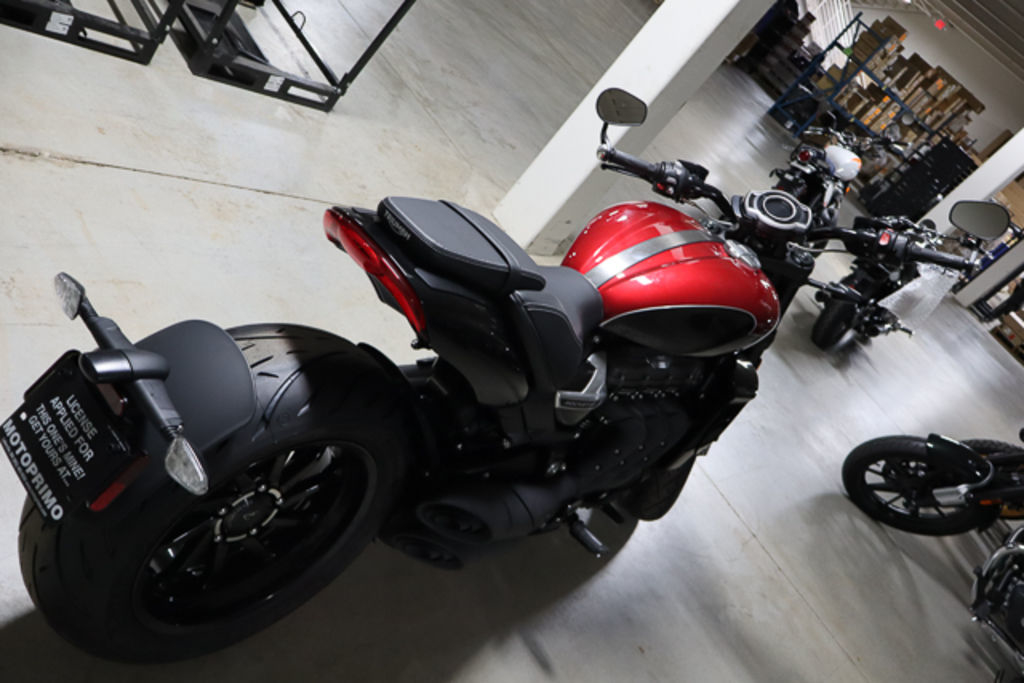 The pure muscular stance of the Rocket 3 Storm is a statement of intent — one that