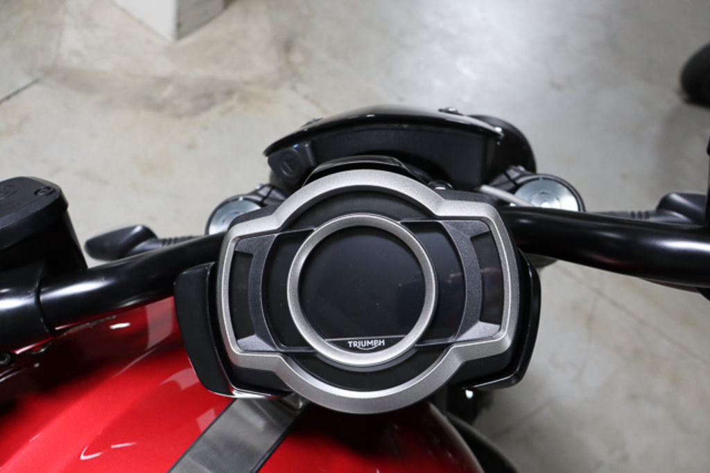 Powerful Triumph branded twin headlights combine with stylish indicators and an integrated rear light to complete the Rocket’s distinctive lighting signature.