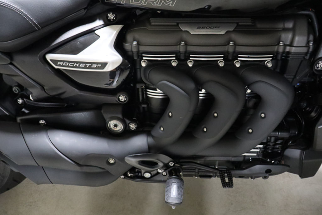 The materials used throughout the Rocket 3 Storm were carefully chosen to deliver blacked-out attitude with the highest-quality finish. From the crinkle black powder-coated intake cover to the hydro-formed exhaust headers, the attention to detail is unmatched.