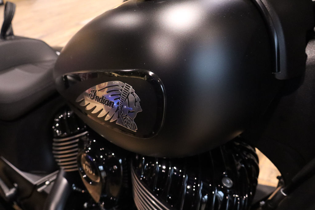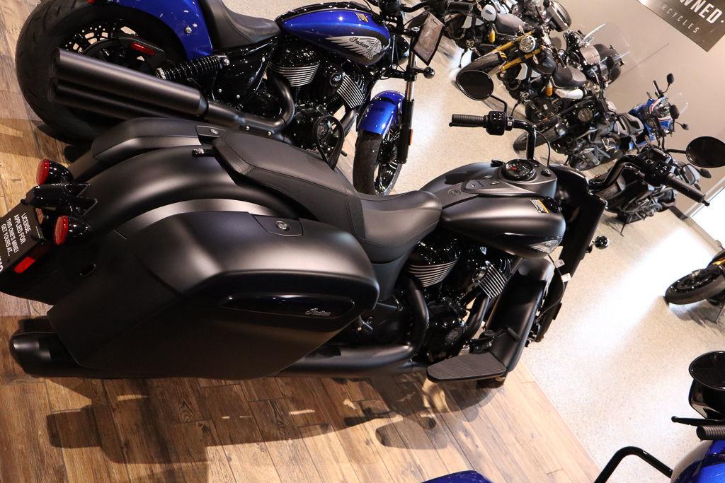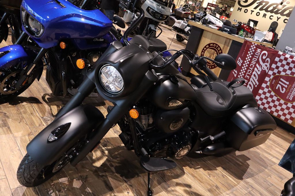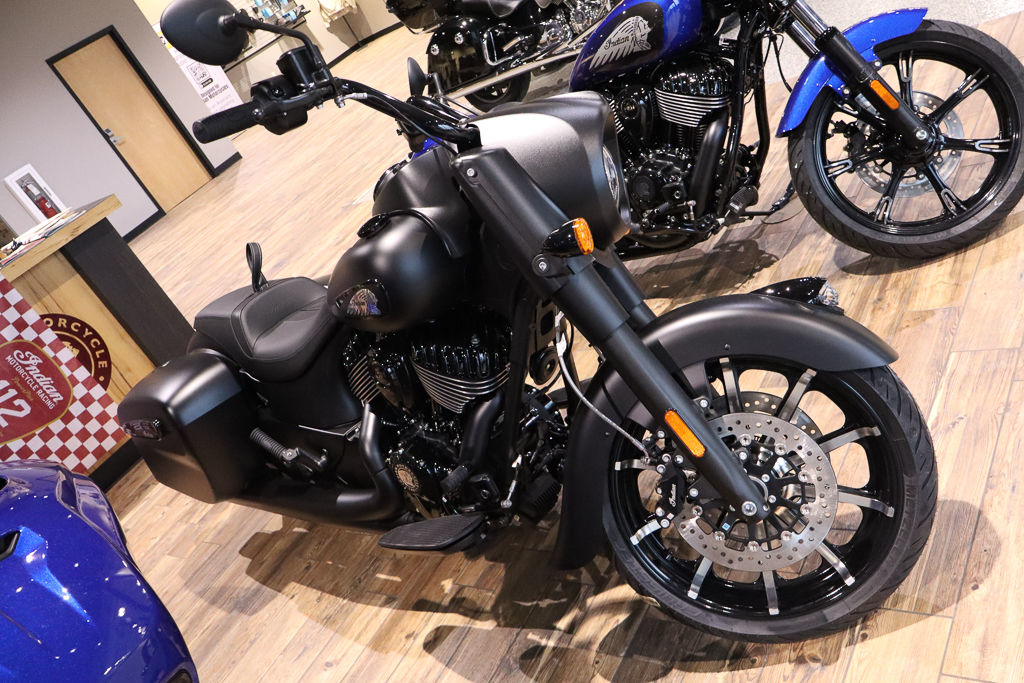 Inspired by the look of custom bikes, the Indian Springfield Dark Horse keeps your fists in the wind and eyes on you.