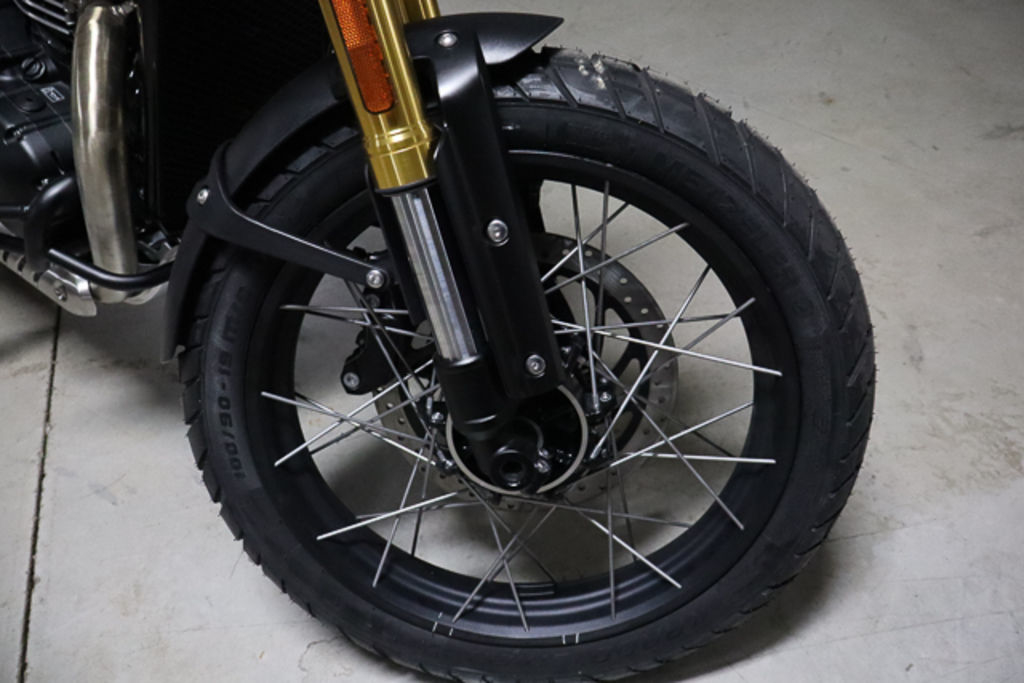 Strong, lightweight Excel rims with beautifully side-laced stainless steel spokes offer classic Scrambler style with increased capability for off-road exploration. Fitted with tubeless Metzeler tires for increased puncture protection.