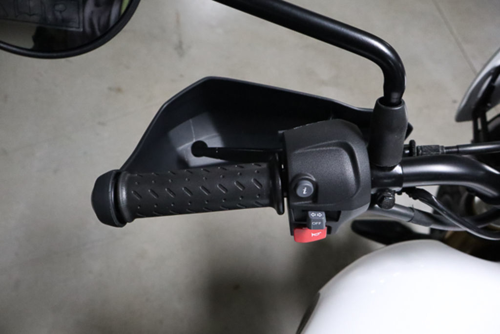 Compact and easy to read, with a classic analogue speedometer dial and LCD readout for engine rpm, fuel level and gear position, blending traditional style with modern functionality.