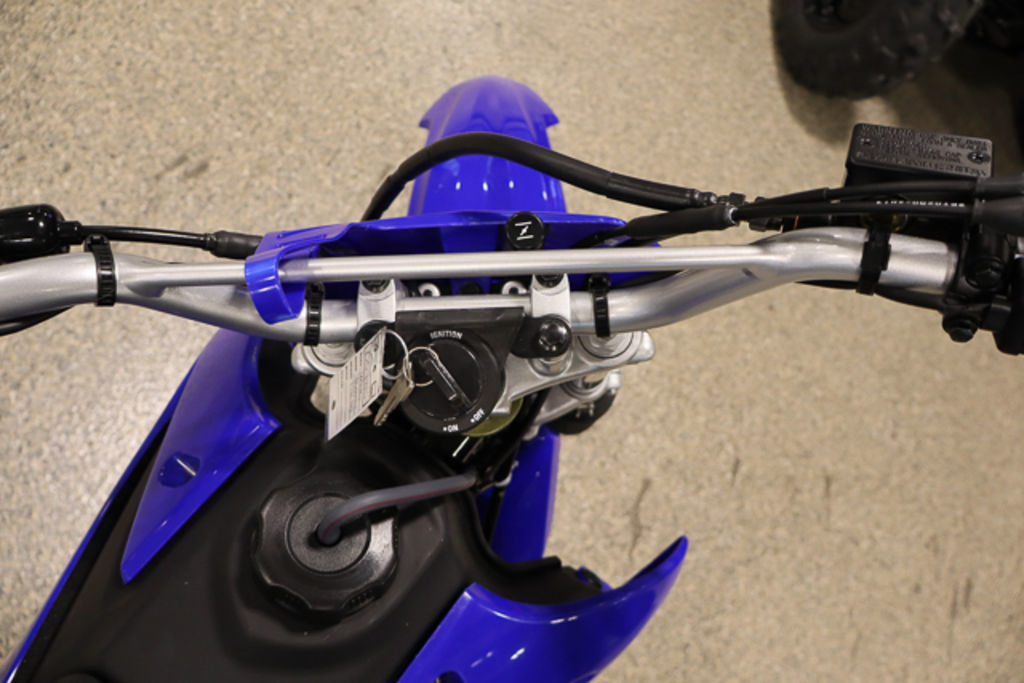 Team Yamaha-inspired colors and graphics with front and side number plates create competition motocross styling similar to its YZ siblings.