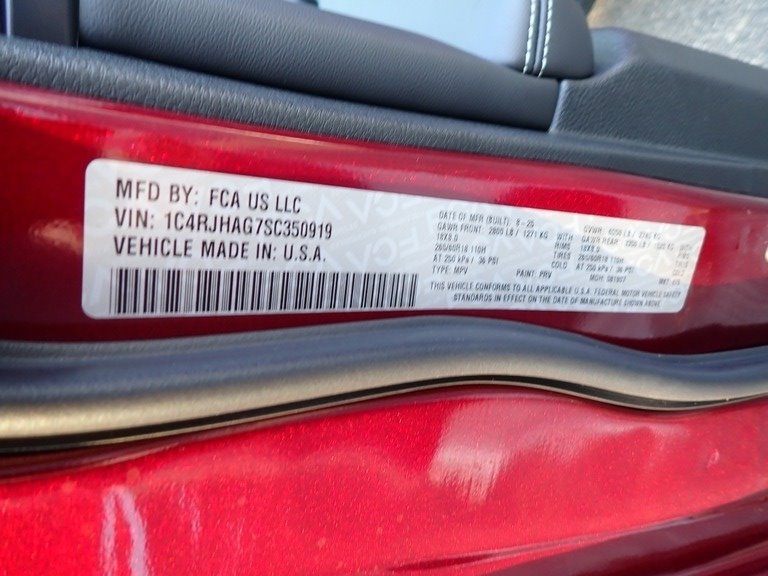 • VIN: 1C4RJHAG7SC350919