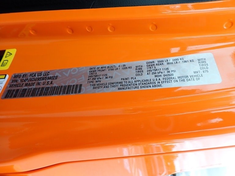 • VIN: 1C4PJXDG9SW594020