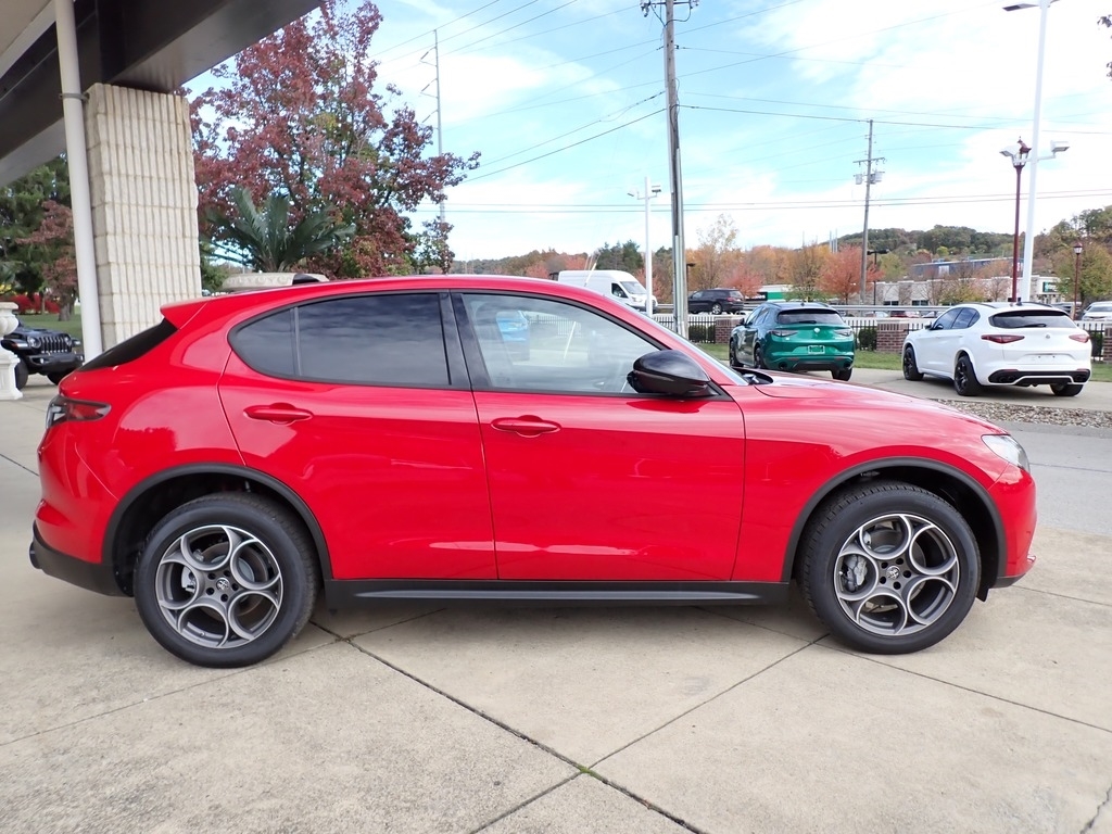 Alfa Rosso 2025 Alfa Romeo Stelvio Sprint AWD 8-Speed Automatic I4 ABS brakes, Active Cruise Control, Alloy wheels, Compass, Electronic Stability Control, Front dual zone A/C, Heated door mirrors, Heated front seats, Heated rear seats, Illuminated entry, Lane Keep Assist, Leather Seats, Low tire pressure warning, Navigation System, ParkView Rear Back-Up Camera, Power Liftgate, Remote keyless entry, Traction control.