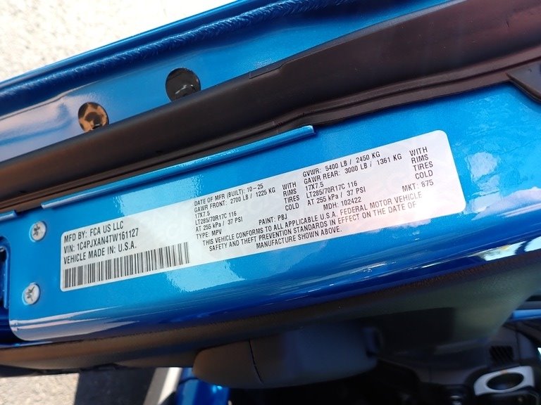 • VIN: 1C4PJXAN4TW161127