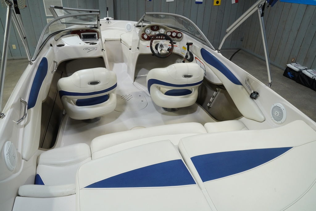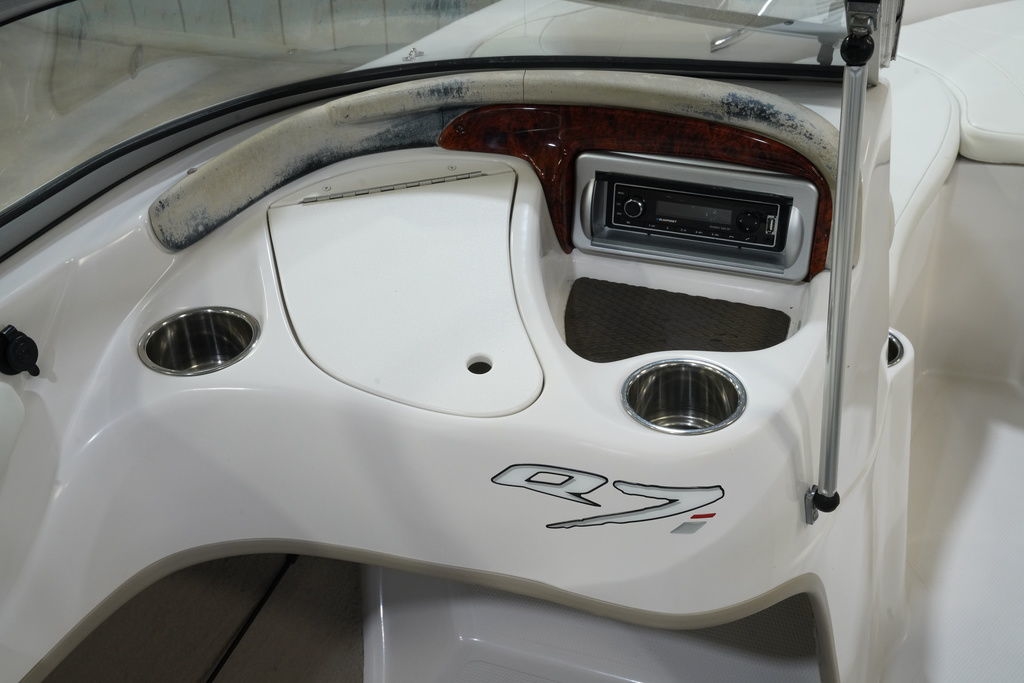 20’ 6” of pure fishing and skiing fun!Our largest ski and fish runabout is tricked out to dish out fun on the lake for a crew of up to 9. In addition to it's impressive length and huge 96" (2.44 m) beam, this spacious craft boasts luxurious seating throughout with lots of storage and an easily-deployable bimini top if you need some shade.Fishing features include 2 stowable chairs with fore and aft pedestal base locations, a trolling motor and an aerated livewell. Playing features include an AM/FM Bluetooth®-capable stereo, a full-width swim platform, and a stainless steel tow ring.So whether you prefer battling big bass or getting air of a tall wake—or both— you'll find everything you need onboard the Q7i SF.