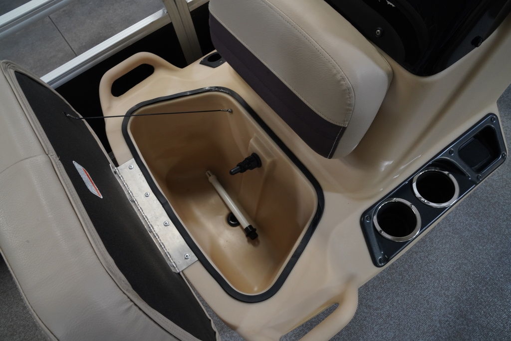 - 9-gal. (34.07 L) forward-console aerated livewell & 8-gal. (30.28 L) aft rotomolded, aerated livewell w/built-in ruler, drink holder & rod holder