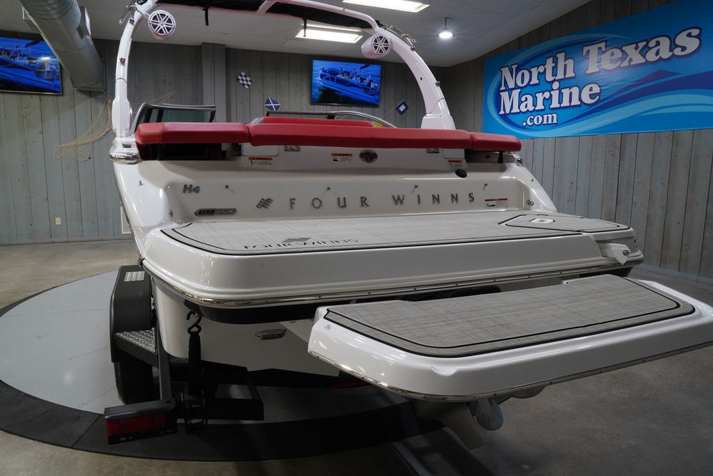 The next chapter begins with the H4. A re-imagined bowrider that brings a fresh sense of style and excitement to the category. Defined by its vertical bow stem, the H4 combines strength with a contemporary style, further proving that Four Winns is willing to break from tradition to create something bold and new.