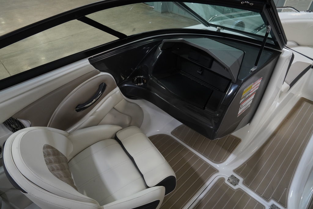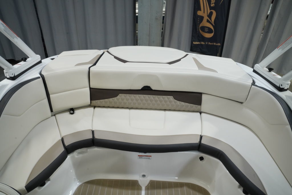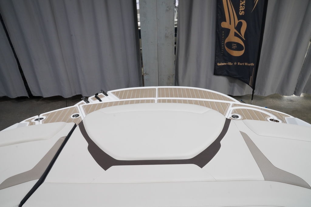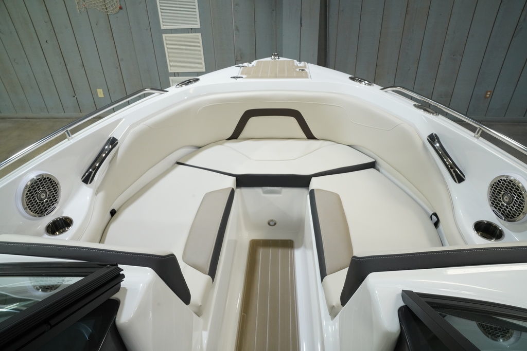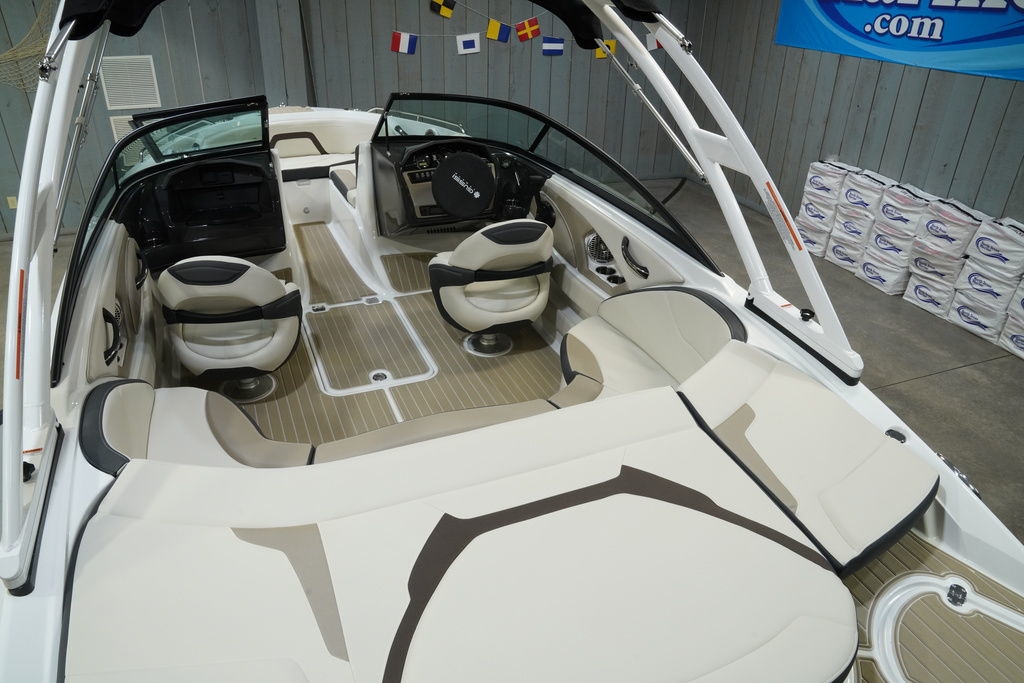 The high performance ride you’ve been waiting for, the 224FS’s luxurious features include back-lit Faria gauges with stainless steel bezels in the helm, spacious seating, ample storage, and a large sun deck. Plus, sporty features like our exclusive air assist chine makes fast handling a breeze while the optional factory installed wakeboard tower makes catching big air an out of the world experience.