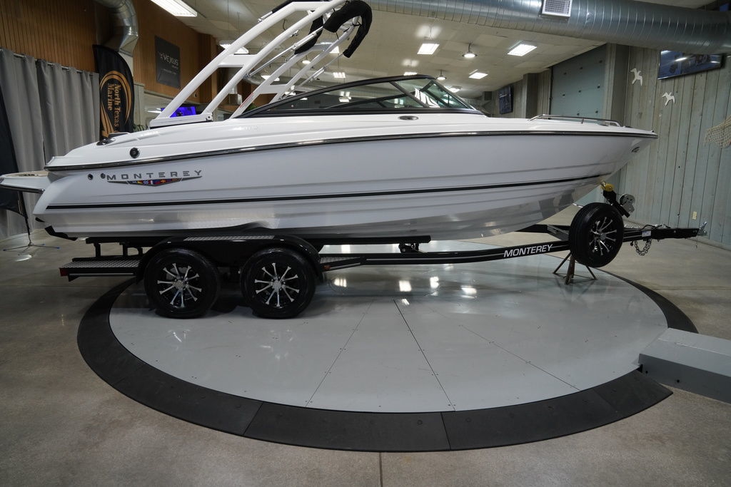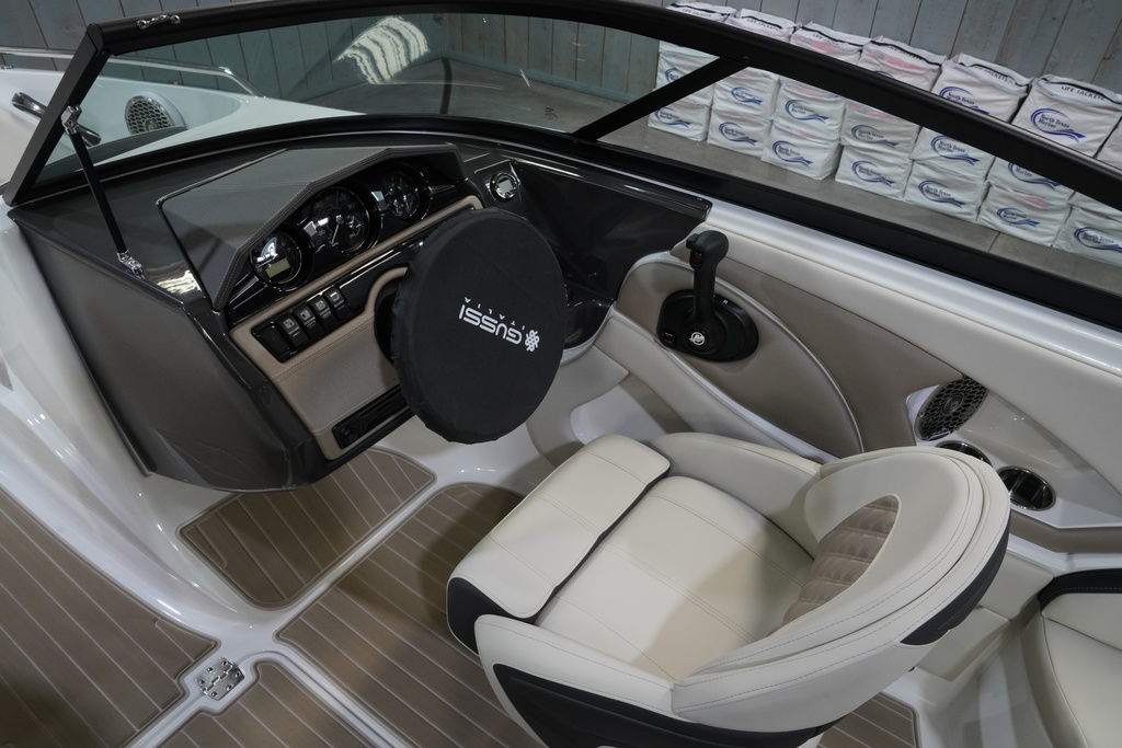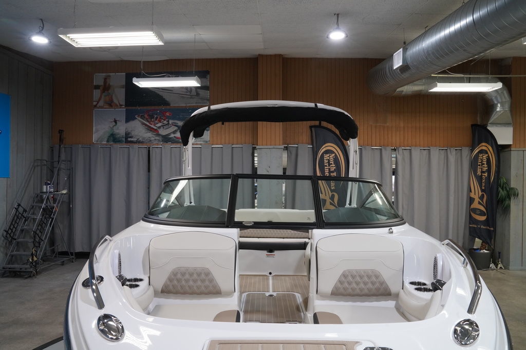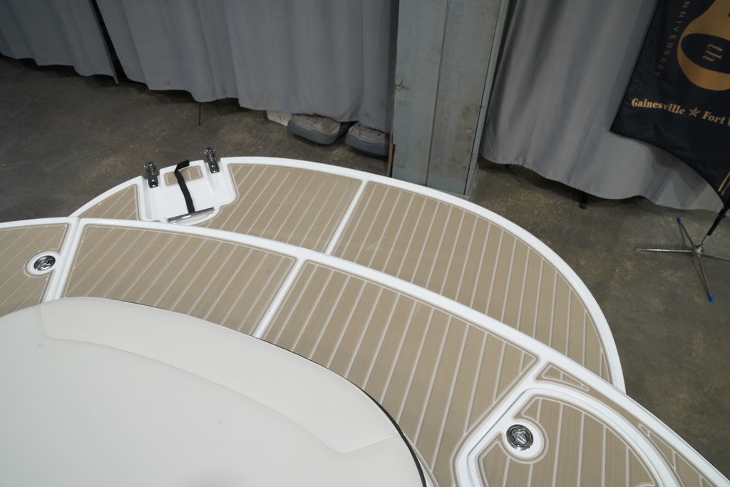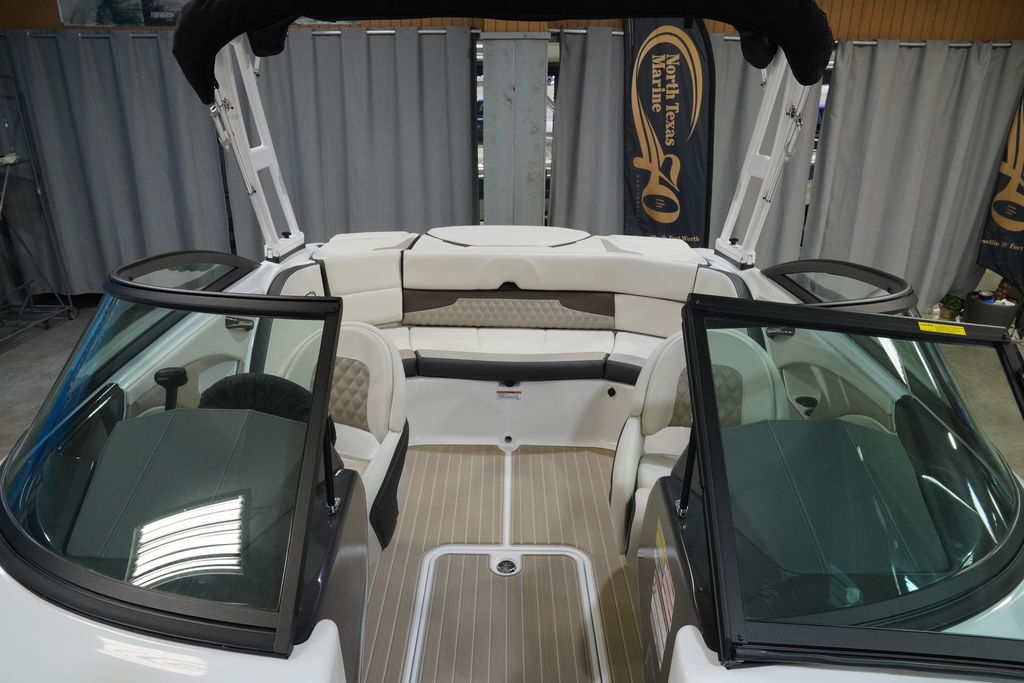 The high performance ride you’ve been waiting for, the 224FS’s luxurious features include back-lit Faria gauges with stainless steel bezels in the helm, spacious seating, ample storage, and a large sun deck. Plus, sporty features like our exclusive air assist chine makes fast handling a breeze while the optional factory installed wakeboard tower makes catching big air an out of the world experience.