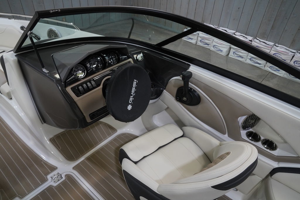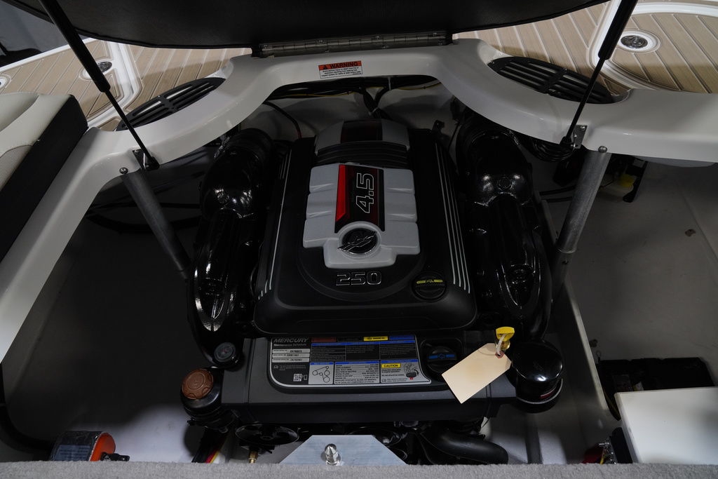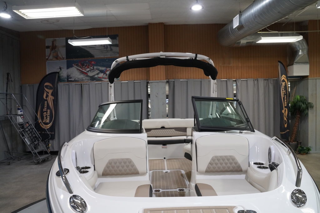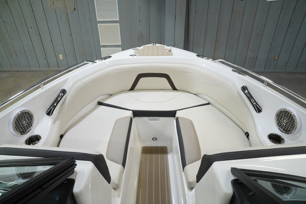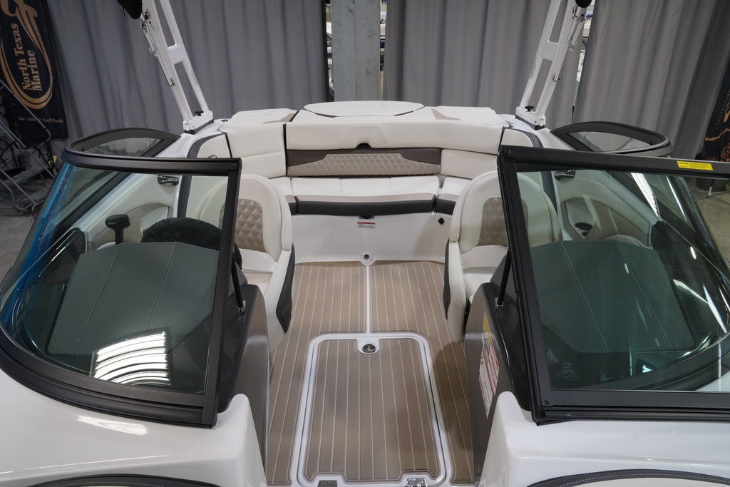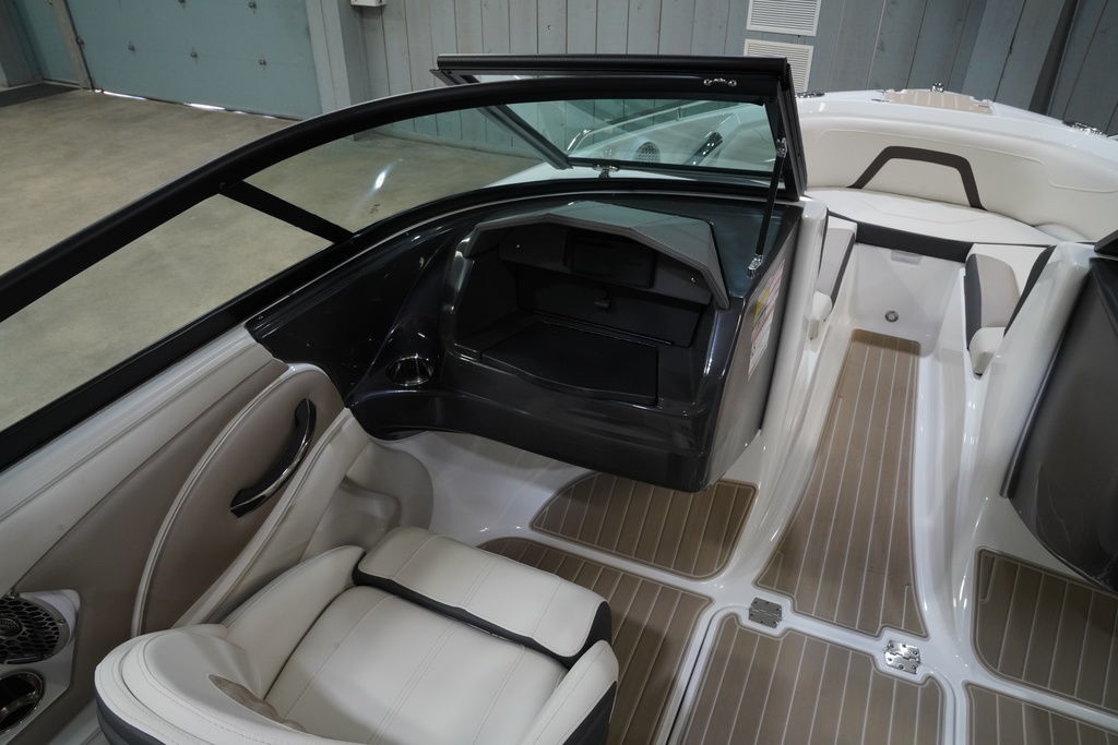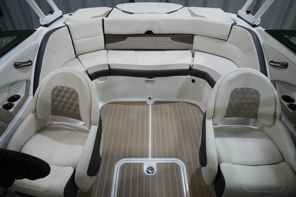 The high performance ride you’ve been waiting for, the 224FS’s luxurious features include back-lit Faria gauges with stainless steel bezels in the helm, spacious seating, ample storage, and a large sun deck. Plus, sporty features like our exclusive air assist chine makes fast handling a breeze while the optional factory installed wakeboard tower makes catching big air an out of the world experience.