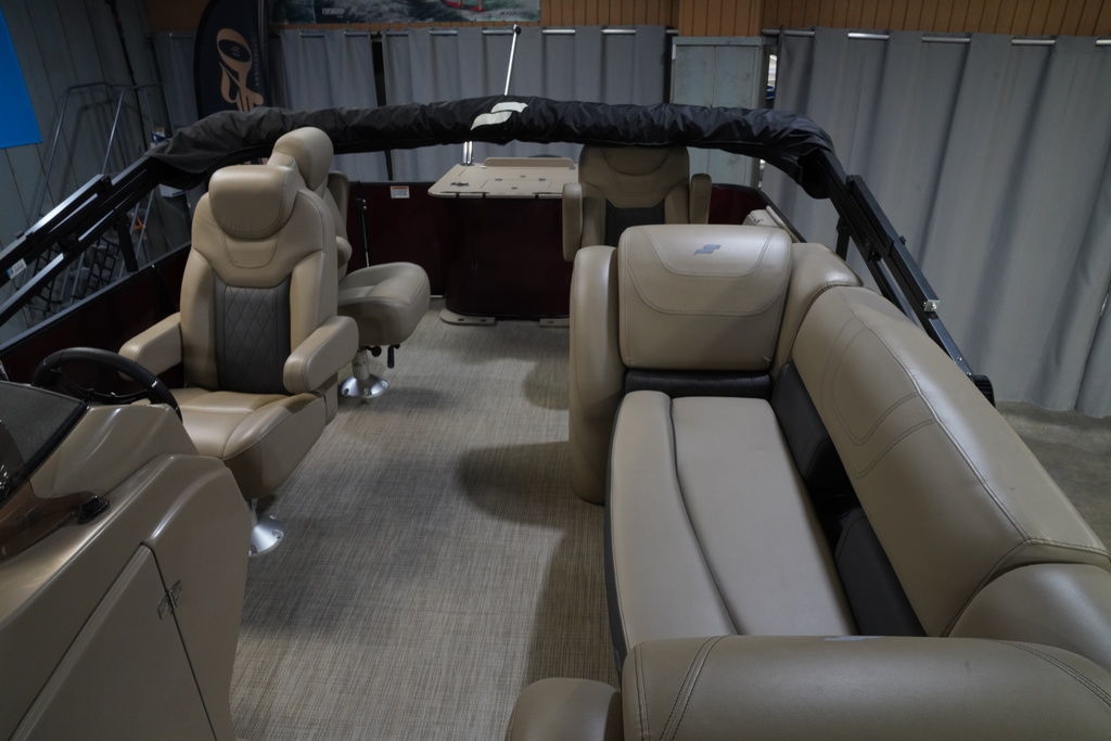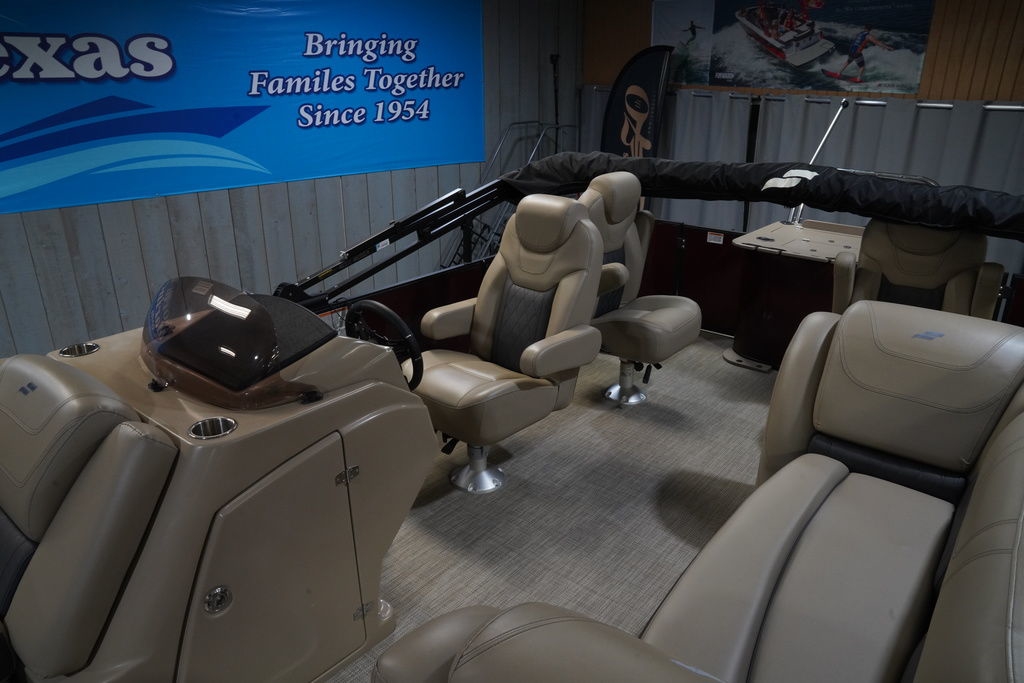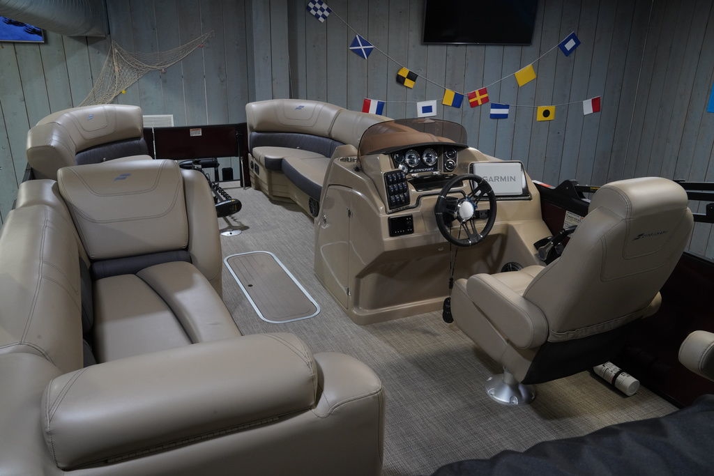 The CX Fish pontoon series combines the excitement of fishing with the comfort of pontoon living. Outfitted with an aerated livewell, lockable rod storage and a rear fishing station, you can relax and cast from deluxe swivel fishing seats knowing you're equipped with the best in fishing and pontoon amenities.