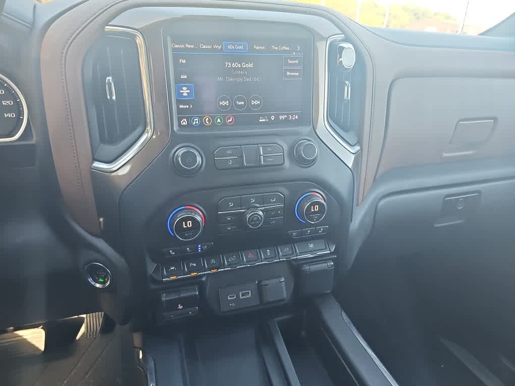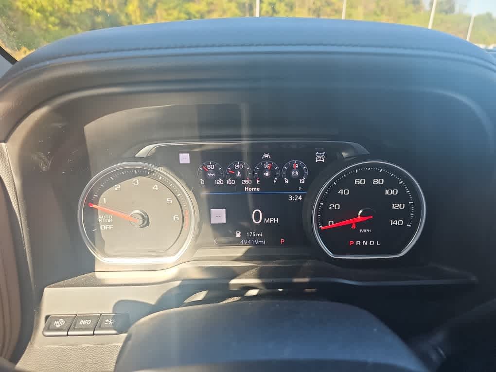 includes (PDJ) Safety Package II, (CF5) power sunroof, (RVA) 22 polished-aluminum wheels, (XCE) 275/50R22SL all-season, blackwall tires and (RIA) floor liner, LPO, (420 hp [313 kW] @ 5600 rpm, 460 lb-ft of torque [624 Nm] @ 4100 rpm); featuring all-new Dynamic Fuel Management that enables the engine to operate in 17 different patterns between 2 and 8 cylinders, depending on demand, to optimize power delivery and efficiency, includes (UV2) HD Surround Vision, (DRZ) Rear Camera Mirror, full display and (UV6) 15 Diagonal Head-Up Display, includes (UEU) Forward Collision Alert, (UHX) Lane Keep Assist with Lane Departure Warning, (UHY) Low Speed Forward Automatic Braking, (UKJ) Front Pedestrian Braking, (TQ5) IntelliBeam headlamps, (UE4) Following Distance Indicator and (HS1) Safety Alert Seat, 1st and 2nd rows on Crew Cab and Double Cab, (includes Chevrolet Bowtie logo), 8 diagonal HD color touchscreen, AM/FM stereo, Bluetooth® audio streaming for 2 active devices, Apple CarPlay® and Android Auto® capable, enhanced voice recognition, additional memory for in-vehicle apps, cloud connected personalization for select infotainment and vehicle settings. Subscription required for enhanced and connected services after trial period. (STD), with overdrive and tow/haul mode. Includes Cruise Grade Braking and Powertrain Grade Braking. Chevrolet High Country with Iridescent Pearl Tricoat exterior and Jet Black/Umber interior features a 8 Cylinder Engine with 420 HP at 5600 RPM*.