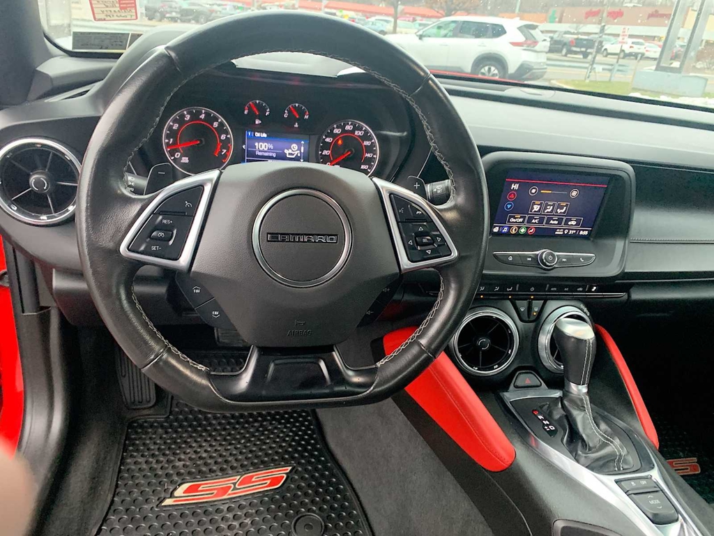 OPTION PACKAGES TRANSMISSION, 10-SPEED AUTOMATIC includes transmission oil cooler and (BTV) remote vehicle starter system, WHEELS, 20 (50.8 CM) 5-SPOKE CARBON FLASH PAINTED ALUMINUM, AUDIO SYSTEM, CHEVROLET INFOTAINMENT 3 SYSTEM, 7 DIAGONAL COLOR TOUCHSCREEN, AM/FM STEREO. Additional features for compatible phones include: Bluetooth® audio streaming for 2 active devices, voice command pass-through to phone, Apple CarPlay® and Android Auto® capable. (STD), ENGINE, 6.2L (376 CI) V8 DI, VVT (455 hp [339.3 kW] @ 6000 rpm, 455 lb-ft of torque [614.3 N-m] @ 4400 rpm) (STD). Chevrolet LT1 with Red Hot exterior and Jet Black interior features a 8 Cylinder Engine with 455 HP at 6000 RPM*.