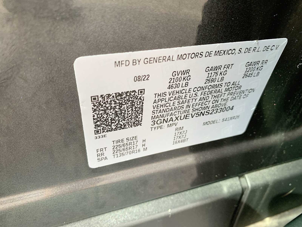 DRIVER CONFIDENCE II PACKAGE includes (UFG) Rear Cross Traffic Alert and (UKC) Lane Change Alert with Side Blind Zone Alert Includes (UD5) Front and Rear Park Assist. Vehicles built on or after July 4, 2022, will be forced to include (00S) Not Equipped with Lane Change Alert with Side Blind Zone Alert and Rear Cross Traffic Alert, which removes Lane Change Alert with Side Blind Zone Alert and Rear Cross Traffic Alert. Vehicles equipped with (00S) Not Equipped with Lane Change Alert with Side Blind Zone Alert and Rear Cross Traffic Alert will be eligible for later dealer retrofit to enable functionality. See dealer for details or the window label for the features on a specific vehicle.), AUDIO SYSTEM, CHEVROLET INFOTAINMENT 3 SYSTEM, 7 DIAGONAL COLOR TOUCHSCREEN, AM/FM STEREO. Additional features for compatible phones include: Bluetooth® audio streaming for 2 active devices, voice command pass-through to phone, Apple CarPlay® and Android Auto® capable. (STD), ENGINE, 1.5L TURBO DOHC 4-CYLINDER, SIDI, VVT (170 hp [127.0 kW] @ 5600 rpm, 203 lb-ft of torque [275.0 N-m] @ 2000 - 4000 rpm) (STD), TRANSMISSION, 6-SPEED AUTOMATIC, ELECTRONICALLY-CONTROLLED WITH OVERDRIVE includes Driver Shift Control (STD), DRIVER CONVENIENCE PACKAGE includes (BTV) Remote Start, (CJ2) dual-zone automatic climate control, (KA1) driver and front passenger heated seats, (N34) leather-wrapped steering wheel and (TB5) power liftgate. Vehicles built prior to November 15, 2021 and on or after February 28, 2022 through March 13, 2022 and after May 1, 2022 include driver and front passenger heated seats. Certain vehicles built between November 15, 2021 and February 27, 2022 and after March 13, 2022 through May 1, 2022 will be forced to include (00V) Not Equipped with Driver and Front Passenger Heated Seats, which removes driver and front passenger heated seats. Vehicles equipped with (00V) Not Equipped with Driver and Front Passenger Heated Seats will be eligible for later dealer retrofit to enable functionality, see. AutoCheck One Owner