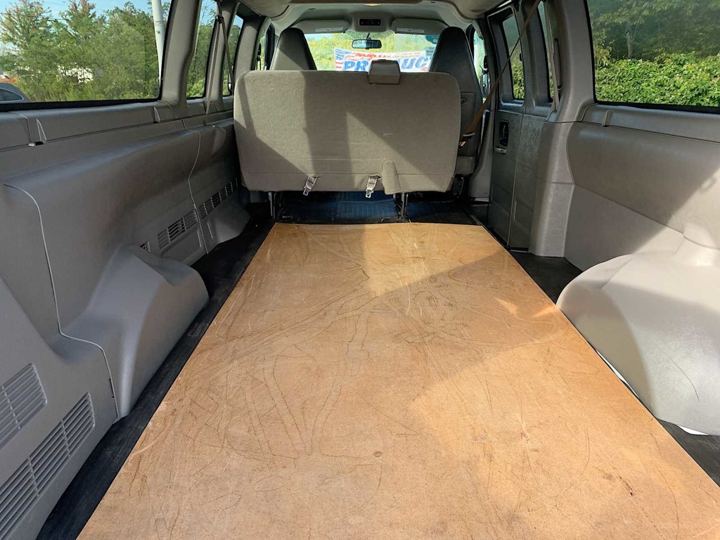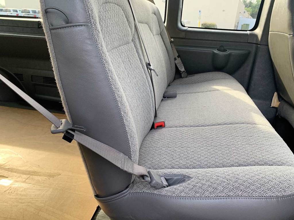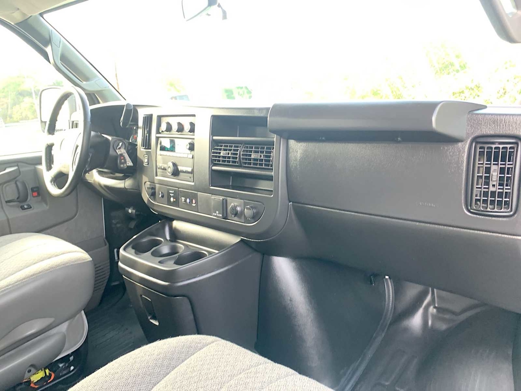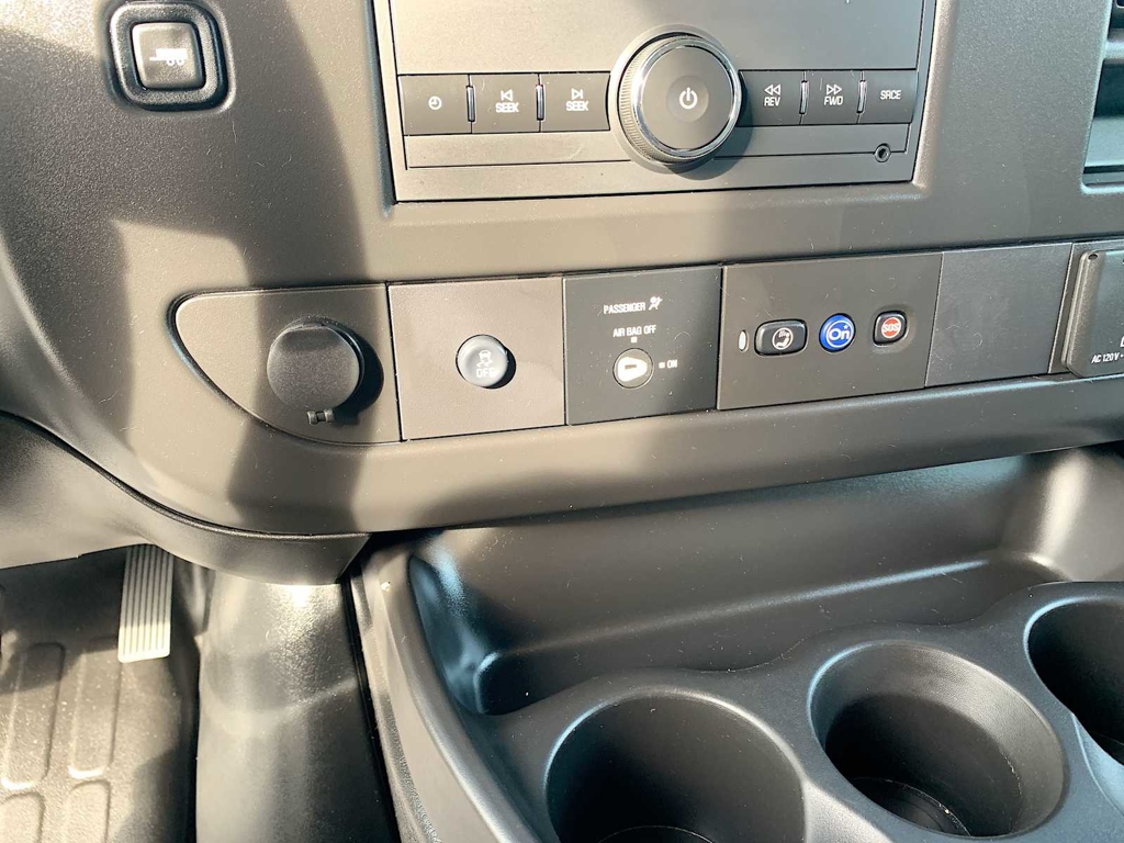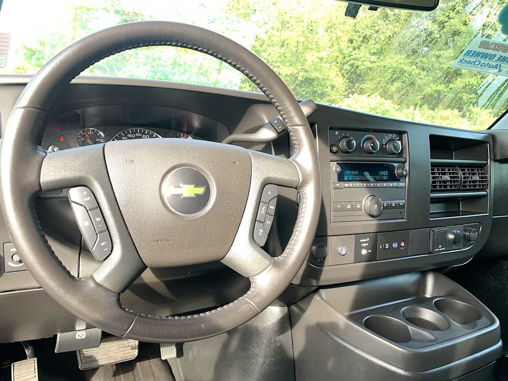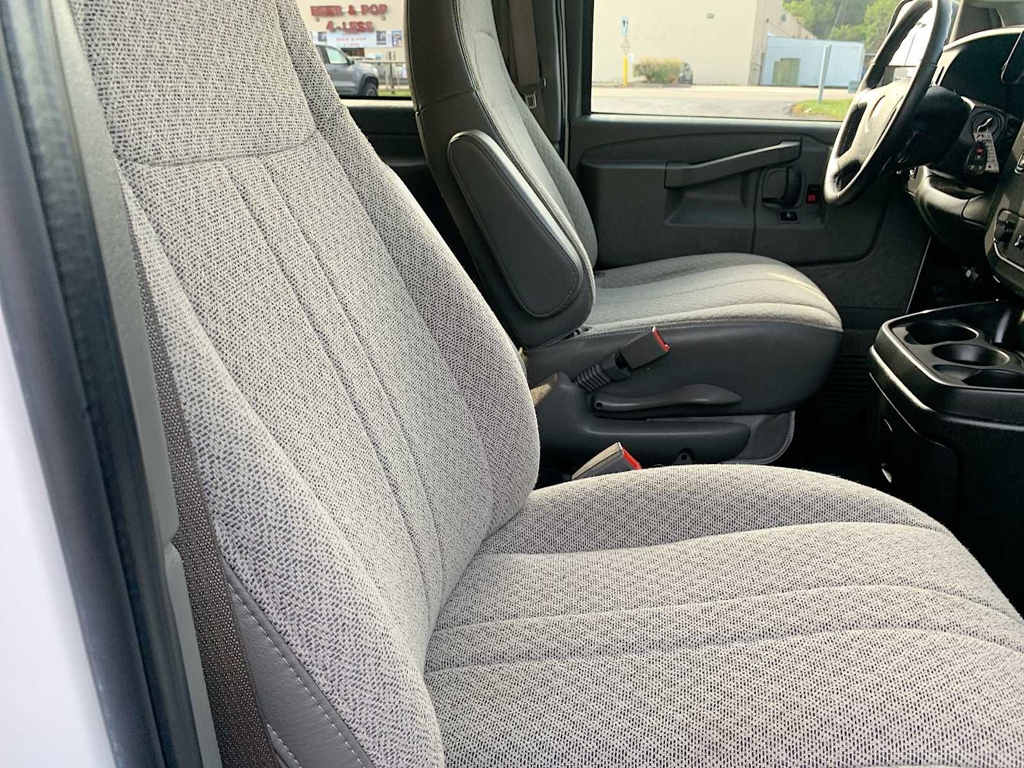 OPTION PACKAGES SEATING ARRANGEMENT, 5-PASSENGER, EXPRESS CREW VAN PACKAGE (Includes 2-row coverage for roof-rail mounted head-curtain airbags.) Includes (ASF) airbags with enhanced technology glass in side rear windows (see Owners Manual), (PNC) Door Trim Panel Package, (B38) full-length Black rubberized-vinyl floor covering, (ZW6) full-body window package glass, (C69) rear air conditioning, (TR9) auxiliary lighting and (93W/93G) Medium Pewter interior. DRIVER CONVENIENCE PACKAGE includes Tilt-Wheel and (K34) cruise control, DIFFERENTIAL, HEAVY-DUTY LOCKING REAR, TRAILERING EQUIPMENT, HEAVY-DUTY includes trailering hitch platform and dual 4-pin/7-pin sealed connector Includes (UY7) trailer wiring.), REMOTE KEYLESS ENTRY with 2 transmitters and remote panic button, AUDIO SYSTEM, AM/FM STEREO WITH MP3 PLAYER AND USB PORT includes seek-and-scan, digital clock, TheftLock, random select, auxiliary jack and 2 front door speakers (Includes (U2K) SiriusXM Radio. GLASS, SOLAR-RAY DEEP-TINTED (all windows except light-tinted glass on windshield and driver- and front passenger-side glass), Bluetooth® FOR PHONE, PERSONAL CELL PHONE CONNECTIVITY TO VEHICLE AUDIO SYSTEM, ENGINE, 4.3L V6 with Direct Injection and Variable Valve Timing, includes aluminum block construction (276 hp [206 kW] @ 5200 rpm, 298 lb-ft of torque [404 Nm] @ 3900 rpm) (STD), TRANSMISSION, 8-SPEED AUTOMATIC, ELECTRONICALLY CONTROLLED with overdrive and tow/haul mode. Includes Cruise Grade Braking, Powertrain Grade Braking and Tap-Up/Tap-Down Driver Shift Control (STD), STEERING WHEEL CONTROLS, MOUNTED AUDIO CONTROLS. Chevrolet Express Cargo Van with Summit White exterior and Medium Pewter interior features a V6 Cylinder Engine with 276 HP at 5200 RPM*.