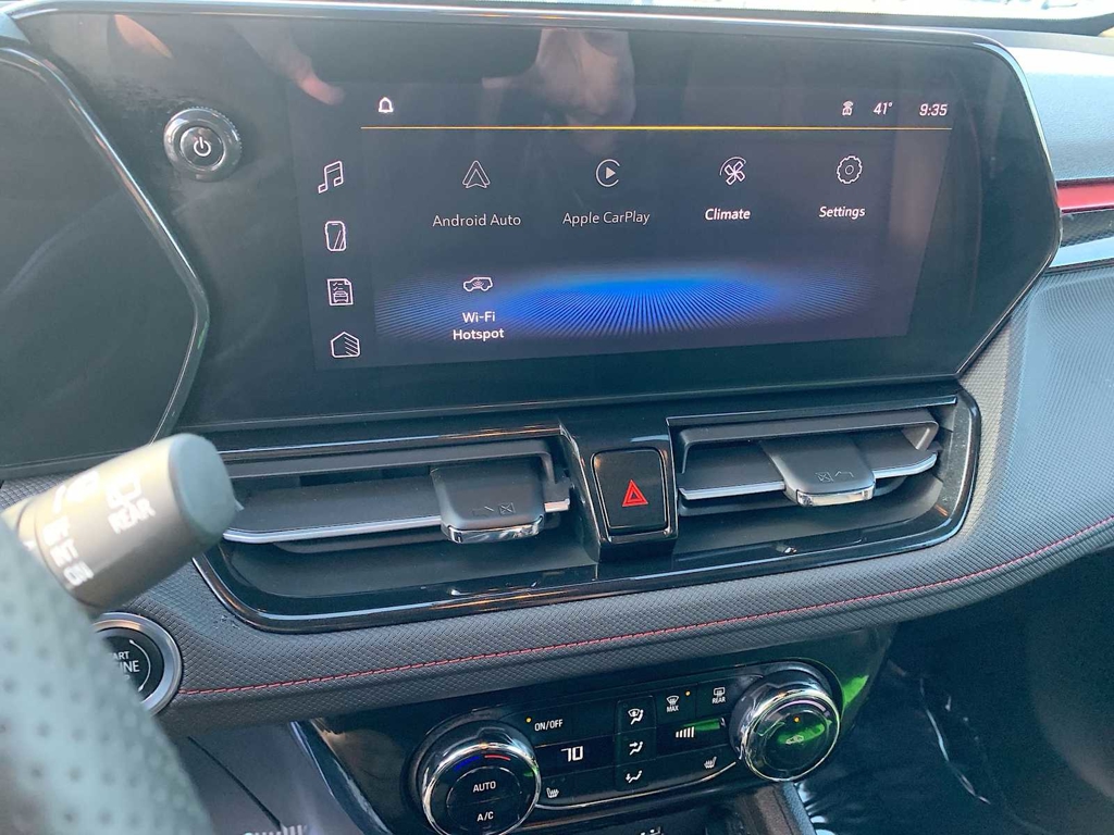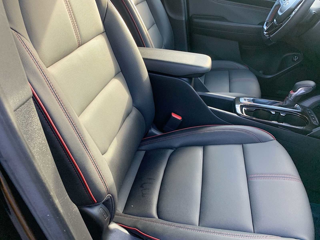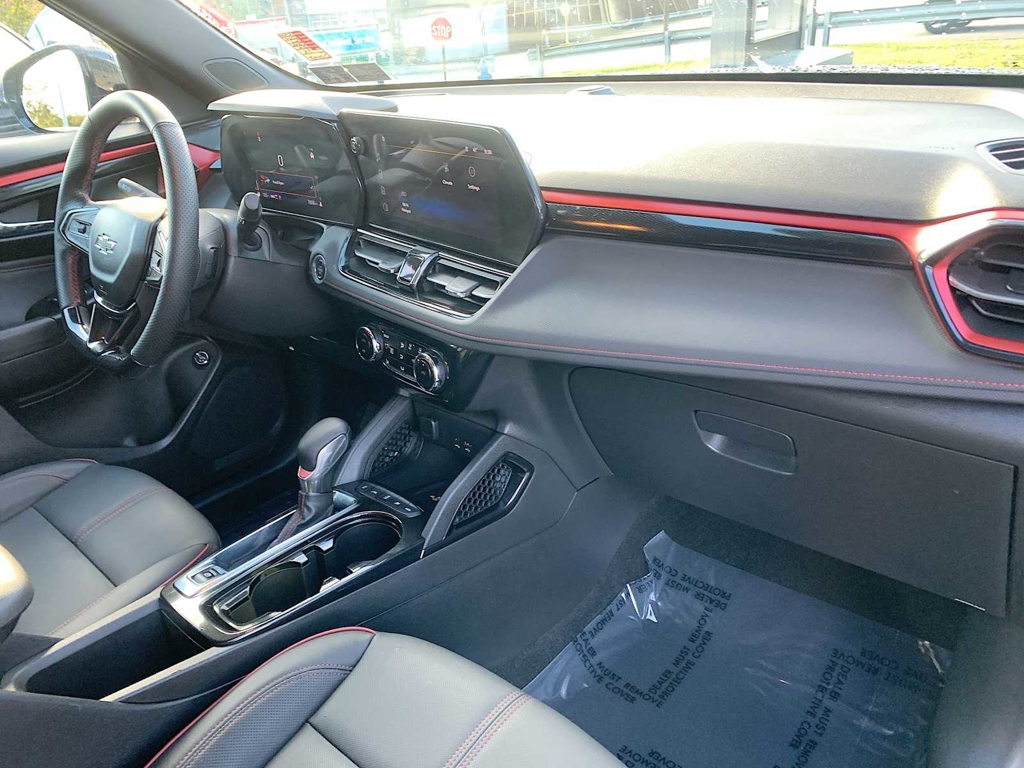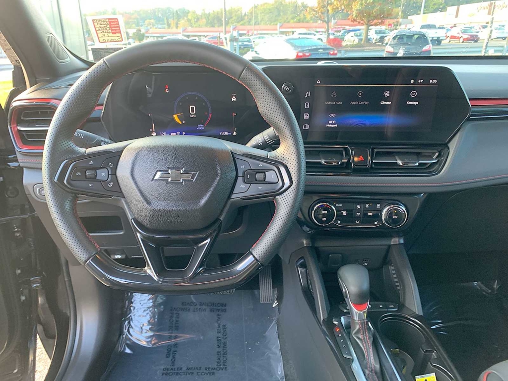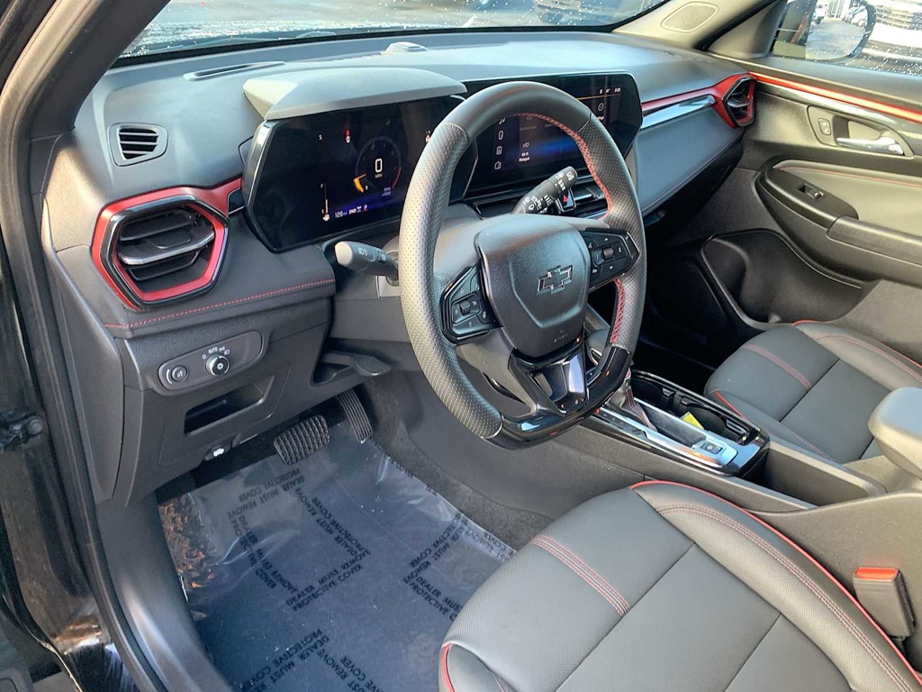 OPTION PACKAGES CONVENIENCE PACKAGE includes (C68) automatic climate control air conditioning, (USS) one type-A and one type-C charging only USB ports, (K4C) Wireless Charging, (KI6) 120-volt power outlet, (DD8) inside rearview auto-dimming mirror and (DMS) driver and front passenger illuminated vanity mirrors, covered, sliding visors (Also includes (TC2) hands free power liftgate. DRIVER CONFIDENCE PACKAGE includes (UKC) Lane Change Alert with Side Blind Zone Alert, (UFG) Rear Cross Traffic Alert and (UD7) Rear Park Assist, AUDIO SYSTEM, 11 DIAGONAL HD COLOR TOUCHSCREEN, AM/FM STEREO. Additional features for compatible phones include: Bluetooth® audio streaming for 2 active devices, voice command pass-through to phone, wireless Apple CarPlay® and wireless Android Auto® capable (STD), ENGINE, ECOTEC 1.3L I3 TURBO DOHC SIDI WITH VARIABLE VALVE TIMING (VVT) (155 hp [115 kW] @ 5600 rpm, 174 lb-ft torque [236 N-m] @ 1600 rpm) (STD), TRANSMISSION, 9-SPEED AUTOMATIC (STD). Chevrolet RS with Mosaic Black Metallic exterior and Jet Black with Red accents interior features a 3 Cylinder Engine with 155 HP at 5600 RPM*.