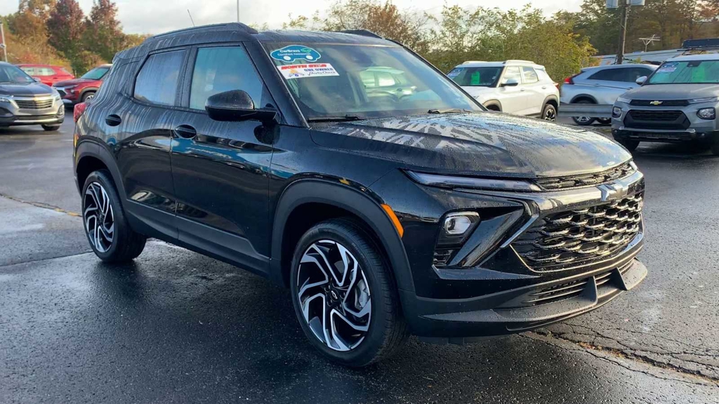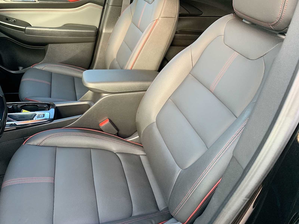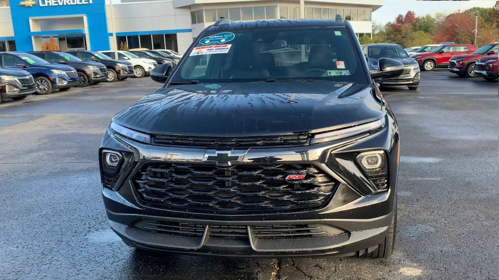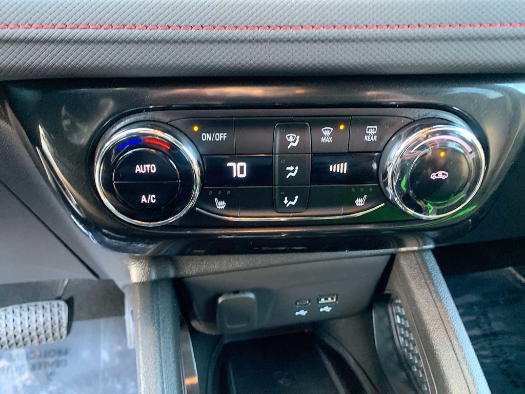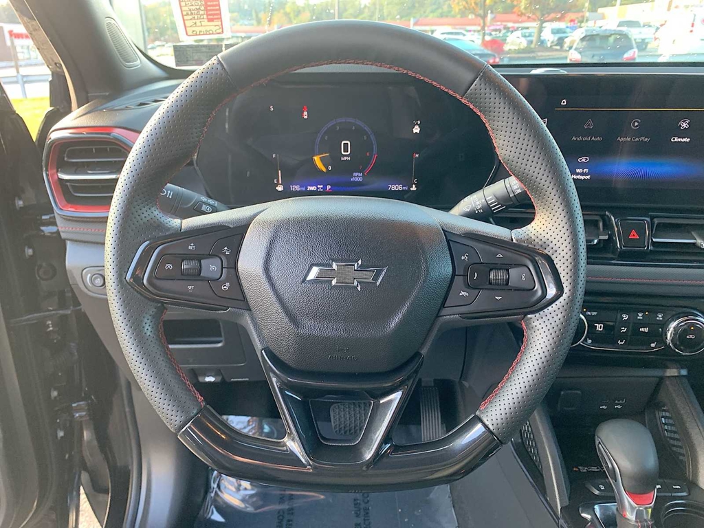 OPTION PACKAGES CONVENIENCE PACKAGE includes (C68) automatic climate control air conditioning, (USS) one type-A and one type-C charging only USB ports, (K4C) Wireless Charging, (KI6) 120-volt power outlet, (DD8) inside rearview auto-dimming mirror and (DMS) driver and front passenger illuminated vanity mirrors, covered, sliding visors (Also includes (TC2) hands free power liftgate. DRIVER CONFIDENCE PACKAGE includes (UKC) Lane Change Alert with Side Blind Zone Alert, (UFG) Rear Cross Traffic Alert and (UD7) Rear Park Assist, AUDIO SYSTEM, 11 DIAGONAL HD COLOR TOUCHSCREEN, AM/FM STEREO. Additional features for compatible phones include: Bluetooth® audio streaming for 2 active devices, voice command pass-through to phone, wireless Apple CarPlay® and wireless Android Auto® capable (STD), ENGINE, ECOTEC 1.3L I3 TURBO DOHC SIDI WITH VARIABLE VALVE TIMING (VVT) (155 hp [115 kW] @ 5600 rpm, 174 lb-ft torque [236 N-m] @ 1600 rpm) (STD), TRANSMISSION, 9-SPEED AUTOMATIC (STD). Chevrolet RS with Mosaic Black Metallic exterior and Jet Black with Red accents interior features a 3 Cylinder Engine with 155 HP at 5600 RPM*.