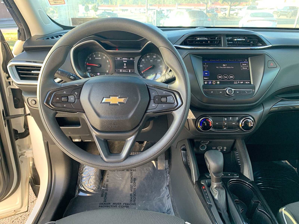 OPTION PACKAGES AUDIO SYSTEM, CHEVROLET INFOTAINMENT 3 SYSTEM 7 diagonal color touchscreen, AM/FM stereo. Additional features for compatible phones include: Bluetooth® audio streaming for 2 active devices, voice command pass-through to phone, Apple CarPlay® and Android Auto® capable. (STD), ENGINE, ECOTEC 1.3L I3 TURBO DOHC SIDI WITH VARIABLE VALVE TIMING (VVT) (155 hp [115 kW] @ 5600 rpm, 174 lb-ft torque [236 N-m] @ 1600 rpm) (STD), TRANSMISSION, 9-SPEED AUTOMATIC (STD). Chevrolet LS with Summit White exterior and Jet Black interior features a 3 Cylinder Engine with 155 HP at 5600 RPM*.