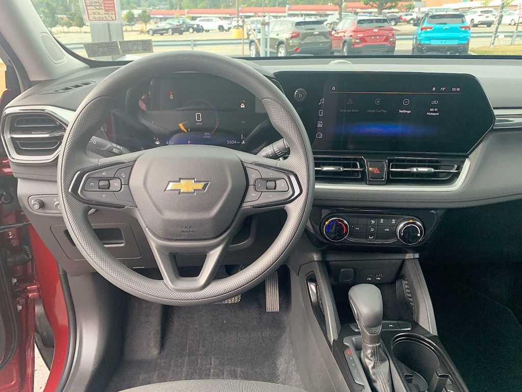 OPTION PACKAGES DRIVER CONFIDENCE PACKAGE includes (UKC) Lane Change Alert with Side Blind Zone Alert, (UFG) Rear Cross Traffic Alert and (UD7) Rear Park Assist, AUDIO SYSTEM, 11 DIAGONAL HD COLOR TOUCHSCREEN, AM/FM STEREO. Additional features for compatible phones include: Bluetooth® audio streaming for 2 active devices, voice command pass-through to phone, wireless Apple CarPlay® and wireless Android Auto® capable (STD), ENGINE, ECOTEC 1.2L I3 TURBO DOHC DI WITH VARIABLE VALVE TIMING (VVT) (137 hp [102 kW] @ 5000 rpm, 162 lb-ft of torque [219 N-m] @ 2500 rpm) (STD), TRANSMISSION, CONTINUOUSLY VARIABLE (CVT) (STD). Chevrolet LT with Crimson Metallic exterior and Jet Black interior features a 3 Cylinder Engine with 137 HP at 5000 RPM*.