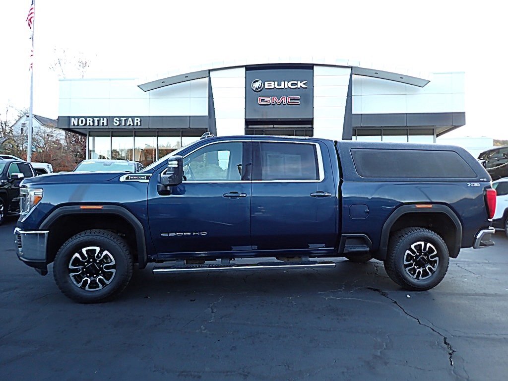 SLE VALUE PACKAGE;: includes (PCQ) SLE Convenience package and (CGN) spray-on bedliner, SLE CONVENIENCE PACKAGE includes (CJ2) dual climate control, (A2X) 10-way power driver seat including power lumbar, (KA1) heated driver and passenger seats, (KI3) heated steering wheel, (N37) manual tilt/telescoping steering column, (C49) rear-window defogger, (ATH) Keyless Open and Start, (N06) Steering column lock, (BTV) Remote Start, (UTJ) content theft alarm, (AZ3) front 40/20/40 split-bench with underseat storage, (USS) 2 charge-only USB ports for second row, (QT5) EZ Lift power lock and release tailgate, (UF2) cargo bed LED lighting, (KPA) rear auxiliary 12-volt power outlet, (T3U) fog lights, (U01) Roof Marker Lamps and (B1J) rear wheelhouse liners, PREFERRED PACKAGE includes (KI4) 120-volt power outlet, (KC9) 120-volt bed-mounted power outlet, (IOS) 8 diagonal Premium GMC Infotainment System, (U2K) SiriusXM with 360L, (UVB) HD Rear Vision Camera, (MCR) USB Ports, (PZ8) Hitch Guidance with Hitch View, (U1D) In-vehicle Trailering App and (U2L) HD Radio; also includes (UG1) Universal Home Remote and (A48) rear sliding power window Also includes (R7O) Cloth Rear Seat Storage Package.), DRIVER ALERT PACKAGE I includes (UD5) Front and Rear Park Assist, (UKC) Lane Change Alert with Side Blind Zone Alert and (UFG) Rear Cross Traffic Alert (Includes Perimeter Lighting. BED LINER, SPRAY-ON, PICKUP BEDLINER WITH GMC LOGO: (does not include spray-on liner on tailgate due to Black composite inner panel), MIRRORS, OUTSIDE POWER-ADJUSTABLE VERTICAL TRAILERING WITH HEATED AND AUTO-DIMMING UPPER GLASS lower convex mirrors, turn signal indicators, puddle lamps, perimeter lighting, auxiliary lighting, power folding/manual extending (extends 3.31 [84.25mm]), Black Includes Perimeter Lighting and (DD8) auto-dimming rearview mirror.), X31 OFF-ROAD PACKAGE includes (JHD) Hill Descent Control, (NZZ) skid plates, Off-Road suspension, Twin-tube Rancho shocks and X31 hard badge Includes (QXT) LT265/70R17E all-terrain, blackwall tires. PACIFIC BLUE METALLIC, TAILGATE, GMC MULTIPRO TAILGATE with six functional load/access features, WHEELS, 18 (45.7 CM) 6-SPOKE MACHINED ALUMINUM with high gloss Black accents, SEAT ADJUSTER, DRIVER 10-WAY POWER: including lumbar, FOG LAMPS, LED, SEAT, CLOTH REAR WITH STORAGE PACKAGE, 60/40 FOLDING BENCH includes seatback storage on left and right side, center fold out armrest with 2 cupholders, (includes child seat top tether anchor), DEFOGGER, REAR-WINDOW ELECTRIC, POWER OUTLET, INSTRUMENT PANEL, 120-VOLT: (400 watts shared with (KC9) bed mounted power outlet), TRANSFER CASE, TWO-SPEED ACTIVE, ELECTRONIC AUTOTRAC: with push button control, ALTERNATOR, 220 AMPS, HEAVY DUTY FRONT SPRING/CAMPER PACKAGE, STEERING WHEEL, HEATED, ENGINE, 6.6L V8 with Direct Injection and Variable Valve Timing, gasoline (401 hp [299 kW] @ 5200 rpm, 464 lb-ft of torque [629 N-m] @ 4000 rpm) (STD), UNIVERSAL HOME REMOTE, SEATING, HEATED DRIVER AND FRONT OUTBOARD PASSENGER, GVWR, 10,650 LBS. (4831 KG), AUDIO SYSTEM, PREMIUM GMC INFOTAINMENT SYSTEM WITH 8 DIAGONAL COLOR TOUCH-SCREEN includes multi-touch display, AM/FM stereo, Bluetooth® streaming audio for music and most phones; featuring Android Auto® and Apple CarPlay® capability for compatible phones, advanced voice recognition, in-vehicle apps, personalized profiles for infotainment and vehicle settings, REAR AXLE, 3.73 RATIO, REMOTE VEHICLE STARTER SYSTEM, KEYLESS OPEN AND START, SLE PREFERRED EQUIPMENT GROUP: includes standard equipment, TRANSMISSION