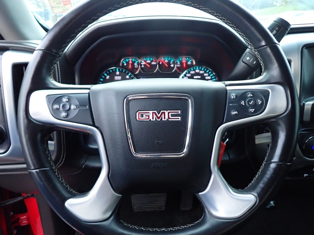 SLT PREMIUM PACKAGE includes (UQA) Bose premium audio system and (RD5) 20 x 9 polished aluminum wheels With Crew Cab model includes (BVQ) 6 rectangular chrome tubular assist steps. With Double Cab model includes (VXH) 6 rectangular chrome tubular assist steps.), WHEELS, 20 X 9 (50.8 CM X 22.9 CM) POLISHED ALUMINUM, ASSIST STEPS, CHROMED TUBULAR, 6 RECTANGULAR, BOSE SOUND WITH 6 SPEAKER SYSTEM: (7 speaker system including subwoofer when ordered with bucket seats) includes (NKC) noise control system.), SUSPENSION PACKAGE, OFF-ROAD: includes Z71 chrome side front fender emblems, monotube Rancho brand shocks and (K47) air cleaner, (JHD) Hill Descent Control, (NZZ) underbody shield, LPO, FRONT AND REAR MOLDED SPLASH GUARDS, BLACK, SLT PREFERRED EQUIPMENT GROUP, GVWR, 7200 LBS. (3266 KG): (STD), REAR AXLE, 3.42 RATIO, AUDIO SYSTEM, 8 DIAGONAL COLOR TOUCH SCREEN WITH GMC INFOTAINMENT SYSTEM, AM/FM/SIRIUSXM, HD RADIO with USB ports, auxiliary jack, Bluetooth® streaming audio for music and most phones, Pandora Internet radio and voice-activated technology for radio and phone (STD), ENGINE, 5.3L ECOTEC3 V8, WITH ACTIVE FUEL MANAGEMENT, DIRECT INJECTION and Variable Valve Timing, includes aluminum block construction (355 hp [265 kW] @ 5600 rpm, 383 lb-ft of torque [518 Nm] @ 4100 rpm; more than 300 lb-ft of torque from 2000 to 5600 rpm) (STD), TRANSMISSION, 6-SPEED AUTOMATIC, ELECTRONICALLY CONTROLLED with overdrive and tow/haul mode. Includes Cruise Grade Braking and Powertrain Grade Braking (STD). GMC SLT with Cardinal Red exterior and Jet Black interior features a 8 Cylinder Engine with 355 HP at 5600 RPM*. Non-Smoker vehicle, Tonneau Cover