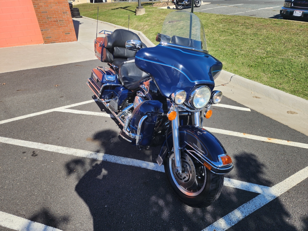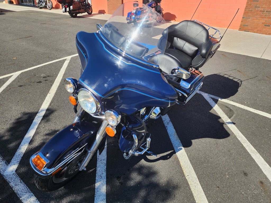 Swing a leg over an Ultra Classic® Electra Glide® and there’s no resisting the allure of going in all-out style. Especially with features like the new comfort-stitched saddle. Hard bags and Deluxe King Tour-Pak® luggage box. Batwing fairing and lowers with convenient storage. 40-watts-per-channel, 4-speaker AM/FM/CD sound. Electronic passenger sound controls. Built-in C.B./voice-activated intercom. Helmet-mounted headset.* Cruise control. It’s dressed to thrill. But go further, and there’s no denying the feel of a Harley-Davidson® motorcycle. The classic style. The way the standard EFI Twin Cam 88® engine rumbles "potato, potato, potato." How it authoritatively sends you across a continent. It’s fully decked-out touring. As only Harley-Davidson can do it. *Use restricted in some states and countries. See dealer for details. Availability of colors may vary from dealer to dealer, and is subject to change without notice. Pearl: additional $340 Two-tone: additional $810