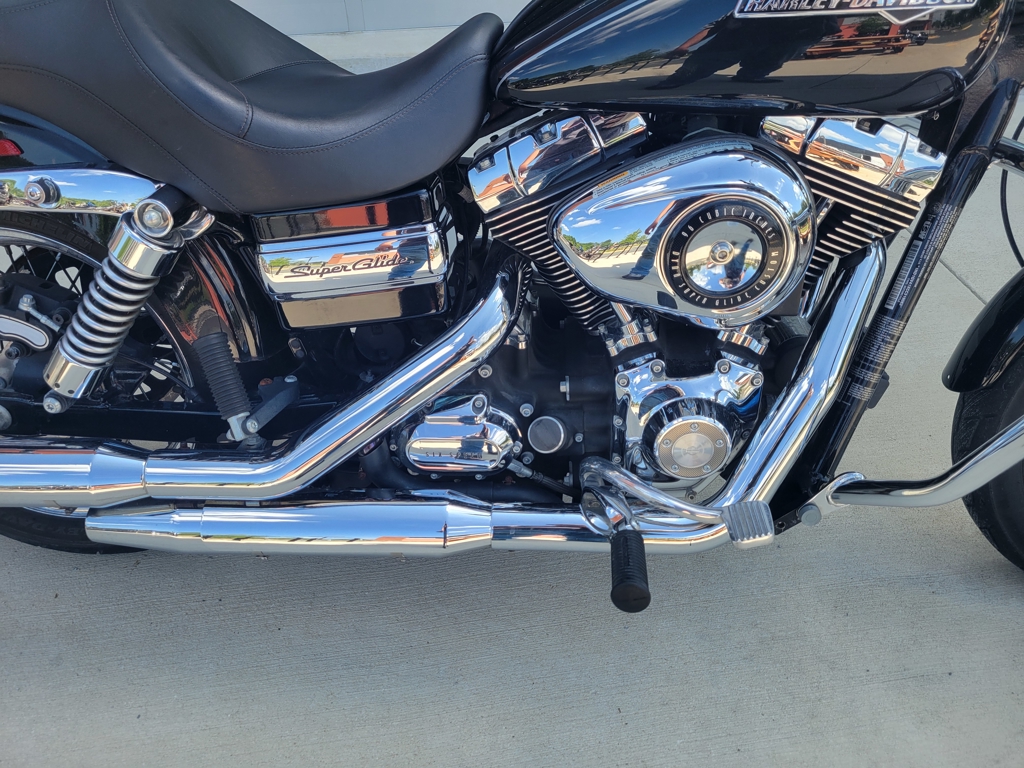 The 2012 Harley-Davidson® Dyna® Super Glide® Custom FXDC is a bike with the power you need and all the Harley chrome you want. The Super Glide Custom motorcycle holds true to its name with unique, custom styling features from tire to tire. The tank-mounted gauges engulfed in chrome, authentic leather fuel tank panel, unique battery box cover, solid stainless steel pullback handlebar, and fuel tank medallion that oozes iconic Harley-Davidson attitude all make this bike one-of-a-kind. Powering this Harley Dyna bike is a black and chrome Twin Cam engine. For a custom look the engine has chrome rocker covers, highlighted fins on the cylinders, and powder coated cylinder heads. For lots of Harley chrome and a smokin' Harley deal this is your custom Harley. If you are interested in chopper motorcycles also learn about the Dyna® Wide Glide® chopper motorcycle. Or if you're interested in a bobber motorcycle, the Dyna® Street Bob® has a classic bobber motorcycle look. Another big twin Dark Custom™ motorcycle option is the Fat Bob®. It is full of big V-twin engine power and it gives you that big motorcycle feel.