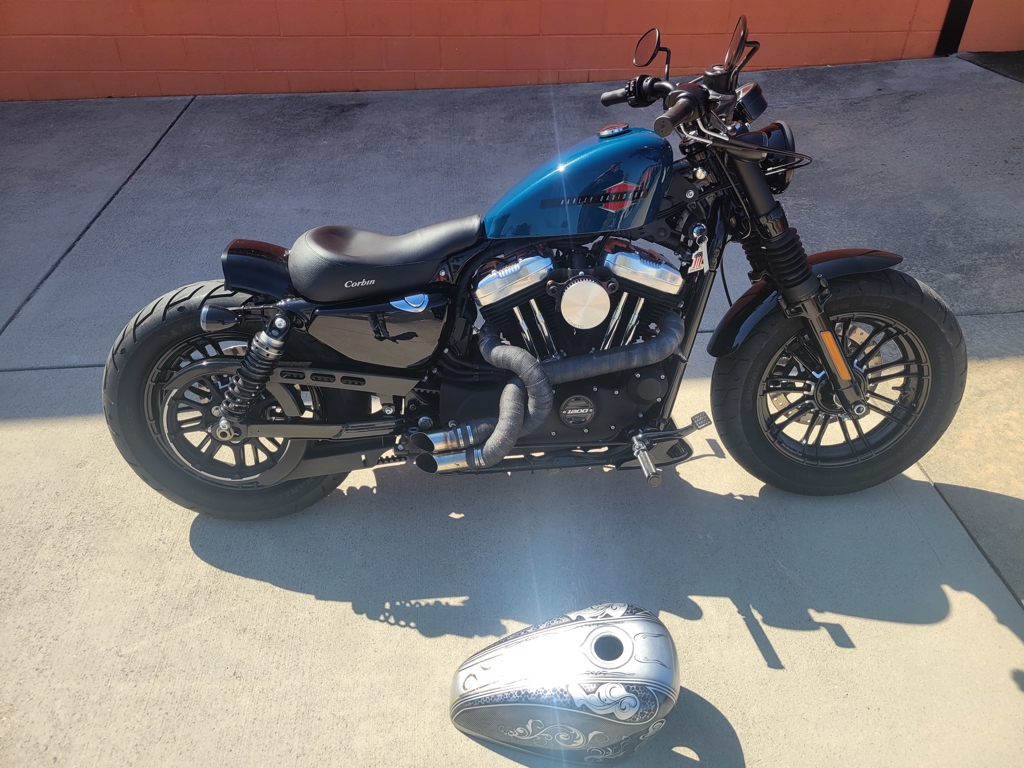 Heavy-hitting fat tire style with an iconic peanut tank and bulldog stance.