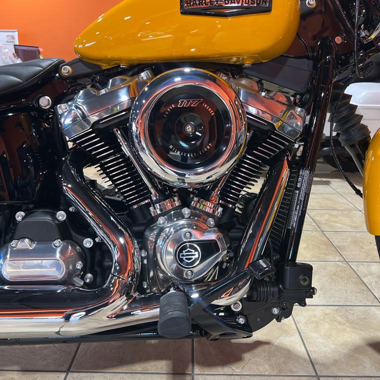 The Street Bob is a lean, mean bobber with mini-ape handlebars, mid-mounted foot controls, and a massive Milwaukee-Eight® 117 Classic V-twin, which makes the slim-but-tough Softail® quicker than ever.