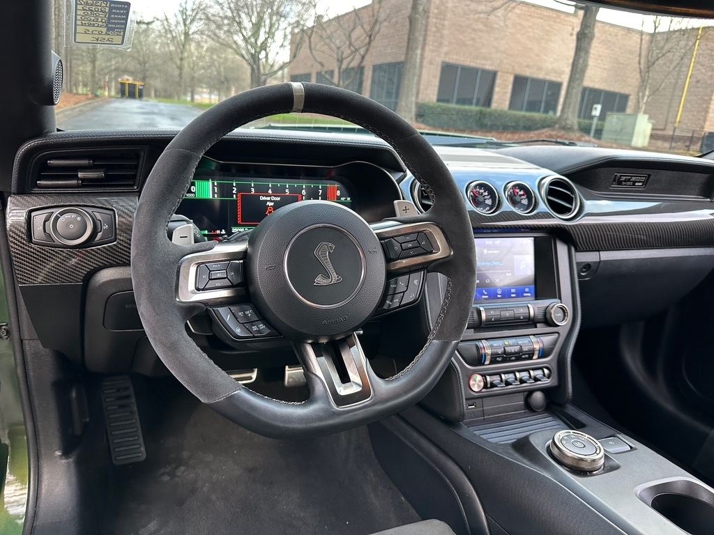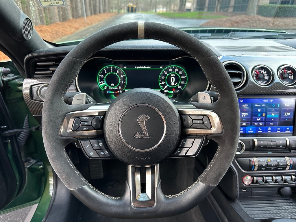 GT500 CARBON FIBER TRACK PACKAGE, TECHNOLOGY PACKAGE, EXPOSED CARBON FIBER WING, EXPOSED CARBON FIBER 20 INCH WHEELS, RECARO SEATS, ADJUSTABLE STRUT MOUNTS, GPS / NAVIGATION, REAR BACK UP CAMERA, AUTOMATIC TRANSMISSION, BLIND SPOT & CROSS PATH DETECTION, LEATHER INTERIOR, TOUCHSCREEN DISPLAY, BANG & OLUFSEN SOUND, SATELLITE RADIO, KEYLESS ENTRY, PUSH BUTTON START, REMOTE START, SIDE AIRBAGS, REAR PARK ASSIST SENSORS, BLUETOOTH, STEERING WHEEL MOUNTED AUDIO CONTROLS, DUAL ZONE FRONT CLIMATE, FACTORY SECURITY SYSTEM, FOG LAMPS, TIRE PRESSURE MONITORING DISPLAY, ALL POWER AND MUCH MORE, CARFAX CERTIFIED, 1 OWNER, INCLUDES THE REMAINDER OF THE FACTORY WARRANTY, EXTENDED WARRANTY AVAILABLE, SOME OFFERS INCLUDE FINANCING WITH APPROVED LENDERS FOR ADVERTISED PRICE.. Eruption Green Metallic 2022 Ford Mustang Shelby GT500 5.2L V8 RWDMUST MENTION OR PRESENT AD AT TIME OF PURCHASE TO RECEIVE THE ADVERTISED PRICE. Welcome to Palmer DCJR! We are proud to be a family-owned business serving the greater Roswell area for 30 years. Here at Palmer, we make customer service our top priority. We are also pleased to be able to offer a buying process that can be completed from start to finish online! We will deliver your new vehicle right to your door. Whether you are in search of your next car or looking for a service center you can trust, Palmer Dodge Chrysler Jeep Ram is the place to go. Give us a call, fill out our online form, or stop by for an incredible automotive experience today! THE ADVERTISED PRICE INCLUDES ALL INCENTIVES INCLUDING IRS EV CREDIT BUT DOES NOT INCLUDE SALES TAX, VEHICLE REGISTRATION FEES, OTHER FEES REQUIRED BY LAW, OR FINANCE CHARGES. SOME OFFERS INCLUDE FINANCING WITH APPROVED LENDERS FOR ADVERTISED PRICE. Palmer Dodge is proudly serving... Atlanta, Buckhead, Duluth, Suwanee, Alpharetta, Cumming, Gainesville, Flowery Branch, Buford, Roswell, Jasper, Canton, Woodstock, Peachtree, Ball Ground, Jefferson, Athens, Augusta, Buford, Conyers, Decatur, Tucker, Milton, Douglasville, Alpharetta, Marietta, Sandy Springs, Dunwoody, Johns Creek, Lawrenceville, Lilburn, Chamblee, Stone Mountain, Vinings, Norcross, Oakwood, Sugar Hill, Athens, Kennesaw, Dawsonville. We also service the following states... Georgia, Florida, Alabama, South Carolina, North Carolina, Mississippi, & more.