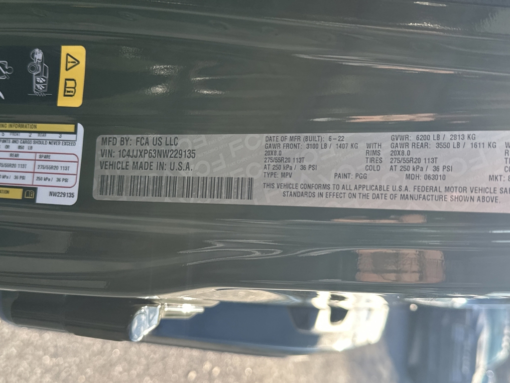 SAHARA HYBRID 4XE 4 DOOR 4X4, RUBICON WHEELS AND TIRES, METAL FRONT BUMPER WITH WINCH, GPS / NAVIGATION, ELECTRONIC INFOTAINMENT SYSTEM GROUP WITH 8.4 INCH TOUCHSCREEN AND ALPINE PREMIUM AUDIO, TRAILER TOW AND HD ELECTRICAL GROUP, REAR BACK UP CAMERA, AUTOMATIC TRANSMISSION, LEATHER INTERIOR, STEEL BUMPER GROUP, LED LIGHTING GROUP, COLD WEATHER GROUP, HEATED SEATS, HEATED STEERING WHEEL, PREMIUM SOFT TOP, HILL DESCENT CONTROL, SATELLITE RADIO, KEYLESS ENTRY, PUSH BUTTON START, REMOTE START, SIDE AIRBAGS, UCONNECT VOICE COMMAND WITH BLUETOOTH, STEERING WHEEL MOUNTED AUDIO CONTROLS, DUAL ZONE FRONT CLIMATE, FACTORY SECURITY SYSTEM, ALLOYS, FOG LAMPS, TIRE PRESSURE MONITORING DISPLAY, ALL WEATHER RUBBER FLOOR MATS, ALL POWER AND MUCH MORE, CARFAX CERTIFIED, 1 OWNER, INCLUDES THE REMAINDER OF THE FACTORY WARRANTY, EXTENDED WARRANTY AVAILABLE. Sarge Green Clearcoat 2022 Jeep Wrangler 2.0L I4 DOHC 4WDMUST MENTION OR PRESENT AD AT TIME OF PURCHASE TO RECEIVE THE ADVERTISED PRICE. Welcome to Palmer DCJR! We are proud to be a family-owned business serving the greater Roswell area for 30 years. Here at Palmer, we make customer service our top priority. We are also pleased to be able to offer a buying process that can be completed from start to finish online! We will deliver your new vehicle right to your door. Whether you are in search of your next car or looking for a service center you can trust, Palmer Dodge Chrysler Jeep Ram is the place to go. Give us a call, fill out our online form, or stop by for an incredible automotive experience today! THE ADVERTISED PRICE INCLUDES ALL INCENTIVES INCLUDING IRS EV CREDIT BUT DOES NOT INCLUDE SALES TAX, VEHICLE REGISTRATION FEES, OTHER FEES REQUIRED BY LAW, OR FINANCE CHARGES. SOME OFFERS INCLUDE FINANCING WITH APPROVED LENDERS FOR ADVERTISED PRICE. Palmer Dodge is proudly serving... Atlanta, Buckhead, Duluth, Suwanee, Alpharetta, Cumming, Gainesville, Flowery Branch, Buford, Roswell, Jasper, Canton, Woodstock, Peachtree, Ball Ground, Jefferson, Athens, Augusta, Buford, Conyers, Decatur, Tucker, Milton, Douglasville, Alpharetta, Marietta, Sandy Springs, Dunwoody, Johns Creek, Lawrenceville, Lilburn, Chamblee, Stone Mountain, Vinings, Norcross, Oakwood, Sugar Hill, Athens, Kennesaw, Dawsonville. We also service the following states... Georgia, Florida, Alabama, South Carolina, North Carolina, Mississippi, & more.