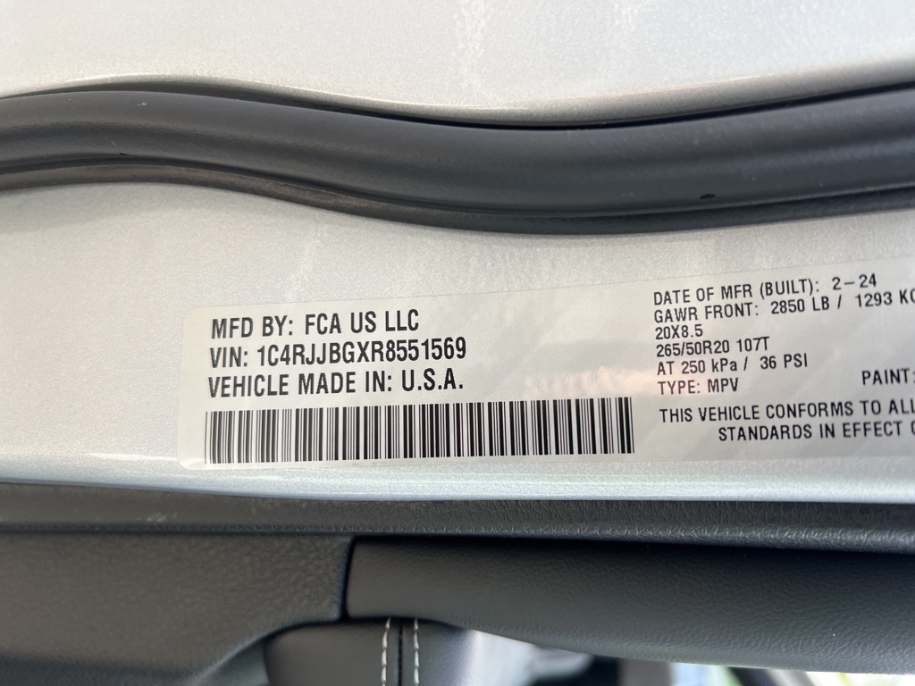 LIMITED L, CERTIFIED PRE OWNED INCLUDES WARRANTY, PANORAMIC SUNROOF, UCONNECT 5 NAVIGATION WITH 10.1 INCH DISPLAY, FACTORY 20 INCH WHEELS, LUXURY TECH GROUP II, SURROUND VIEW 360 DEGREE CAMERA, ADVANCED SAFETY GROUP, ADAPTIVE CRUISE CONTROL, BLIND SPOT & CROSS PATH DETECTION, LANESENSE LANE DEPARTURE WARNING PLUS, FORWARD COLLISION WARNING PLUS, LEATHER INTERIOR, HEATED SEATS, HEATED STEERING WHEEL, VENTILATED FRONT SEATS, 9 AMPLIFIED SPEAKERS WITH SUBWOOFER, SATELLITE RADIO, KEYLESS ENTRY, PUSH BUTTON START, REMOTE START, SIDE AIRBAGS, POWER LIFTGATE, FRONT & REAR PARK ASSIST SENSORS, UCONNECT VOICE COMMAND WITH BLUETOOTH, STEERING WHEEL MOUNTED AUDIO CONTROLS, DUAL POWER SEAT WITH DRIVER MEMORY, DUAL ZONE FRONT CLIMATE, FACTORY SECURITY SYSTEM, POWER TELESCOPING STEERING WHEEL, RUNNING BOARDS, FOG LAMPS, TIRE PRESSURE MONITORING DISPLAY, ALL POWER AND MUCH MORE, CARFAX CERTIFIED, 1 OWNER, INCLUDES THE REMAINDER OF THE FACTORY WARRANTY, EXTENDED WARRANTY AVAILABLE. SOME OFFERS INCLUDE FINANCING. Silver Zynith 2024 Jeep Grand Cherokee L Limited 3.6L V6 24V VVT RWD 19/26 City/Highway MPGFCA US LLC Certified Pre-Owned Details:* Limited Warranty: 3 Month/3,000 Mile (whichever comes first) after new car warranty expires or from certified purchase date* Transferable Warranty* Warranty Deductible: $100* Vehicles Up to 75,000 Miles and/or 5 Model Years. 24-Hour Towing & Roadside Assistance, Car Rental Allowance, CARFAX® Vehicle History ReportTM and an Introductory 3-month Subscription to SiriusXM® Satellite Radio & Certified Warranty Upgrades* Roadside Assistance* 125 Point Inspection* Vehicle History* Powertrain Limited Warranty: 84 Month/100,000 Mile (whichever comes first) from original in-service dateMUST MENTION OR PRESENT AD AT TIME OF PURCHASE TO RECEIVE THE ADVERTISED PRICE. Welcome to Palmer DCJR! We are proud to be a family-owned business serving the greater Roswell area for 30 years. Here at Palmer, we make customer service our top priority. We are also pleased to be able to offer a buying process that can be completed from start to finish online! We will deliver your new vehicle right to your door. Whether you are in search of your next car or looking for a service center you can trust, Palmer Dodge Chrysler Jeep Ram is the place to go. Give us a call, fill out our online form, or stop by for an incredible automotive experience today! THE ADVERTISED PRICE INCLUDES ALL INCENTIVES INCLUDING IRS EV CREDIT BUT DOES NOT INCLUDE SALES TAX, VEHICLE REGISTRATION FEES, OTHER FEES REQUIRED BY LAW, OR FINANCE CHARGES. SOME OFFERS INCLUDE FINANCING WITH APPROVED LENDERS FOR ADVERTISED PRICE. Palmer Dodge is proudly serving... Atlanta, Buckhead, Duluth, Suwanee, Alpharetta, Cumming, Gainesville, Flowery Branch, Buford, Roswell, Jasper, Canton, Woodstock, Peachtree, Ball Ground, Jefferson, Athens, Augusta, Buford, Conyers, Decatur, Tucker, Milton, Douglasville, Alpharetta, Marietta, Sandy Springs, Dunwoody, Johns Creek, Lawrenceville, Lilburn, Chamblee, Stone Mountain, Vinings, Norcross, Oakwood, Sugar Hill, Athens, Kennesaw, Dawsonville. We also service the following states... Georgia, Florida, Alabama, South Carolina, North Carolina, Mississippi, & more.